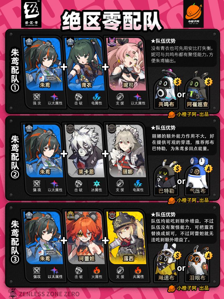 ID:15024695哈喽喽,大家好!这里是小橙子阿!这一期是全角色的配队情况,橙子加入了柏妮思的一些配队,同时也将过去的一些配队进行了更新。好了,话不多说,先把所有配队呈现给大家。#绝区零 #绝区零攻略 #绝区零柏妮思 #绝区零狱火骑行打卡 #绝区零火狱骑行 #游戏种草计划