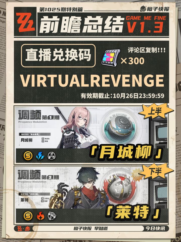 UID:15024695大家好!这里是小橙子阿!今日是《橙子快报》特别篇-1.3前瞻总结新的版本即将到来!!!这里橙子把所新版本活动都总结了一遍!内容包含前瞻兑换码:VIRTUALREVENGE本攻略适用版本:v1.3丨虚拟杀机#绝区零 #绝区零攻略 #绝区零火狱骑行 #绝区零狱火骑行打卡 #游戏种草计划 #绝区零前瞻