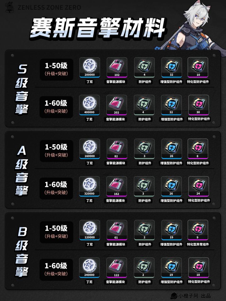 绝区零丨简/赛斯角色+音擎丨养成材料统计