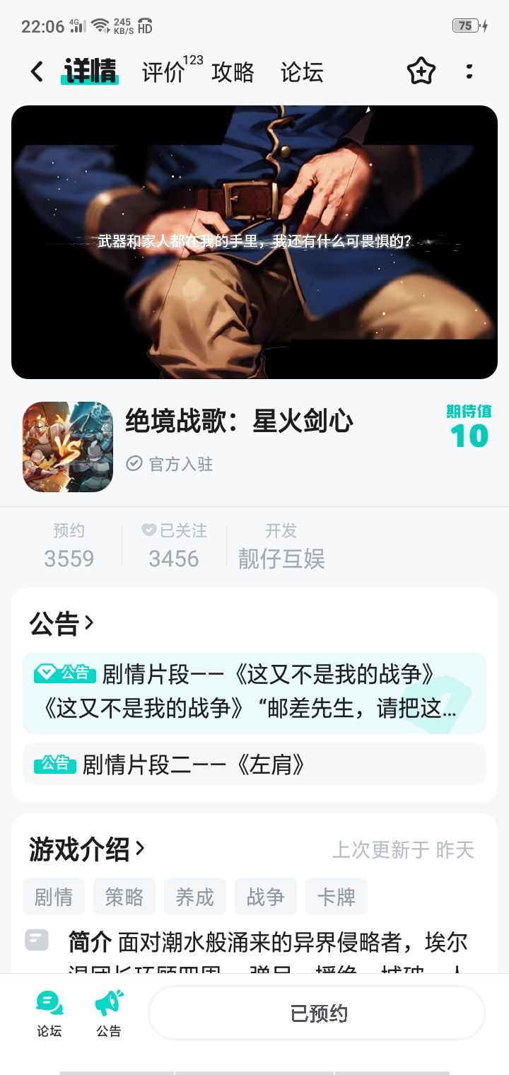 推荐一下,其实我对于卡牌游戏兴趣不大,但是看了他的宣传视频后,我就希望他的游戏快点上线,他的剧情我非常喜欢,为了家园,为了家人而战,这让我很感动,而里面的“武器和家人都在我的手里,我还有什么可畏惧的”让我感受到了“家人就是我的后盾,我的支点”,很令人感动,所以不喜欢玩法,但喜欢剧情的朋友们真以试一下#绝境战歌星火剑心