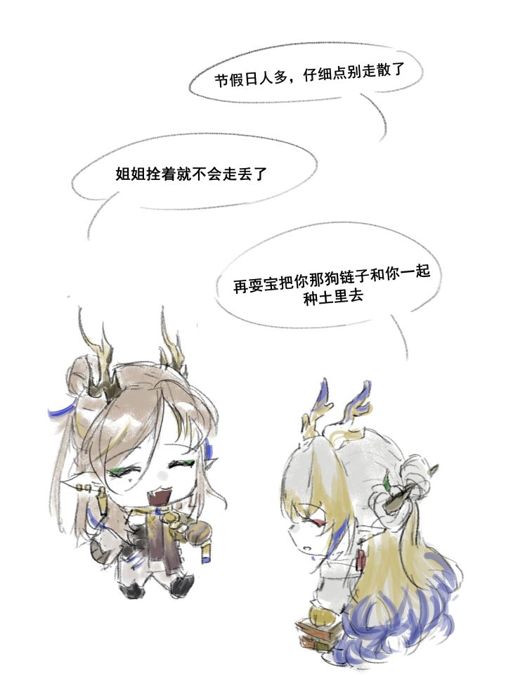 绘制了半年没画的姐弟骨(*´I`*)(一如既往地难画)已free!#明日方舟生路 #明日方舟 #黍 #绩 #明日方舟生路
