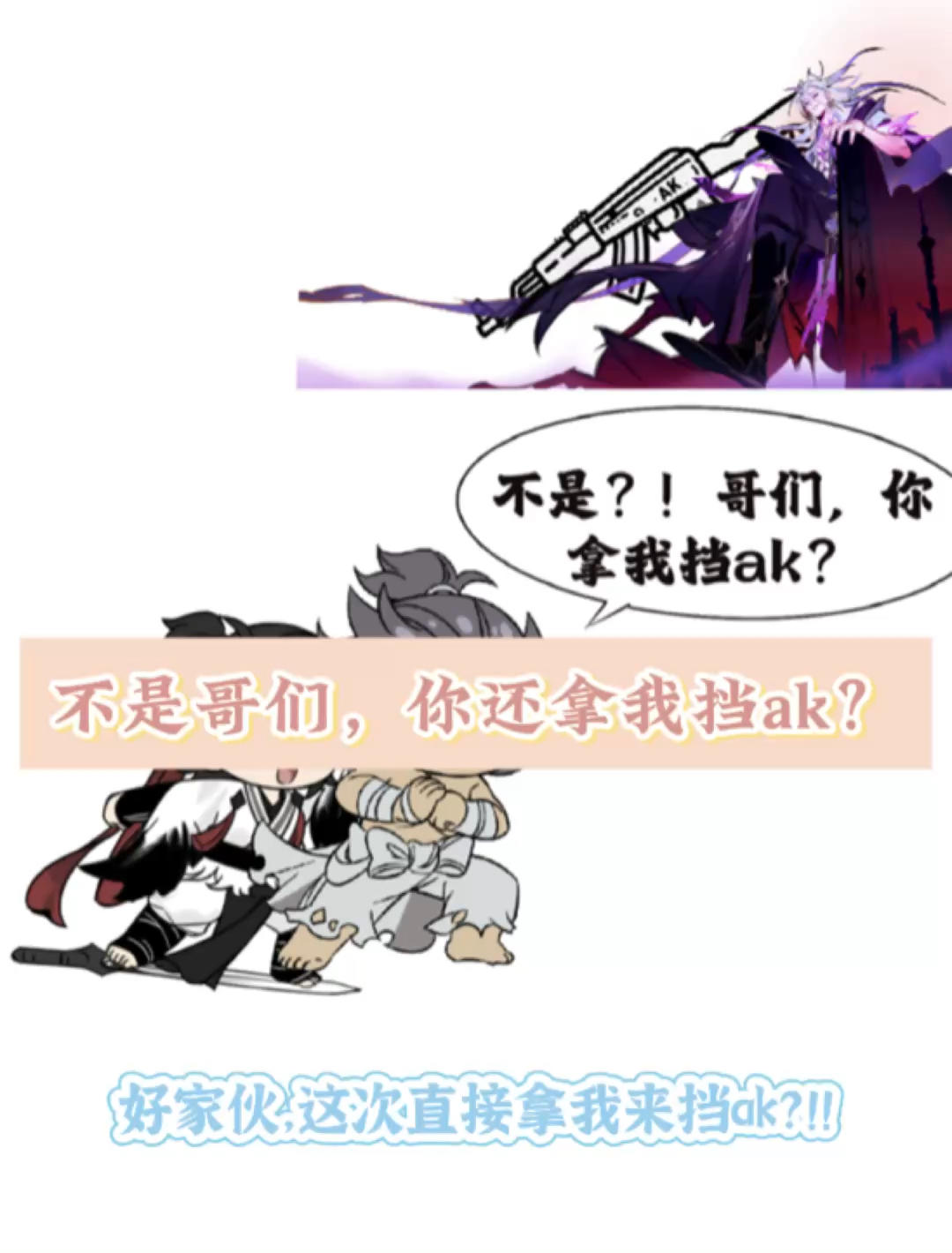 不是哥们,刚控诉完你拎我去挡剑,你还带我去挡ak?!