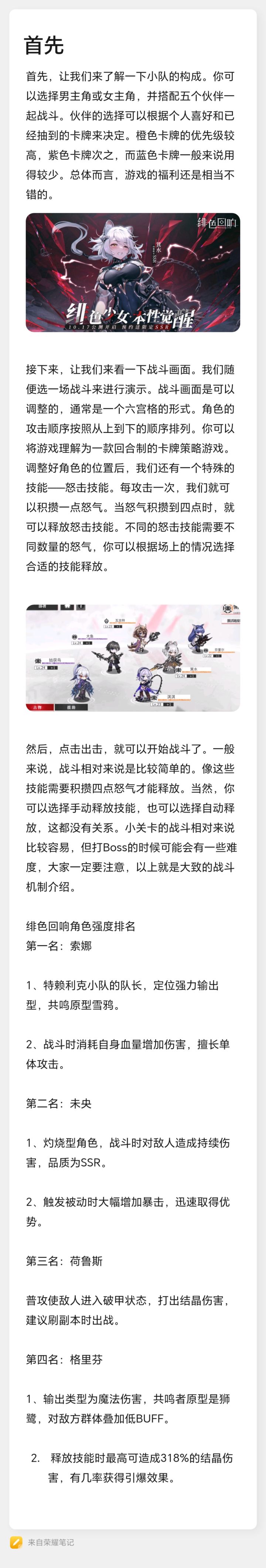 本次攻略征集内容将包括但不限于:开荒攻略、角色测评、角色养成、活动攻略等《绯色回响》相关的游戏内容玩法等图文/视频攻略。