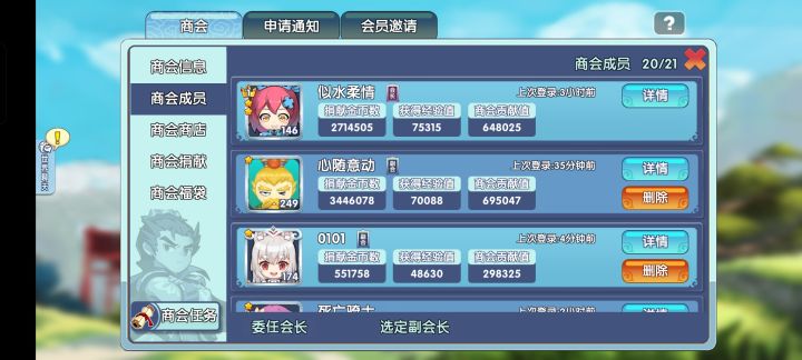 一个服务区为一个时代,每个商会好比一路诸侯,会长为主公,成员为文臣武将。