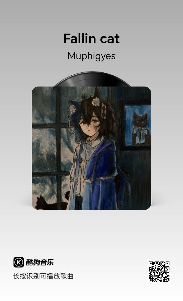 歌曲名:Fallin cat 曲师:Muphigyes 曲绘:黄雨时节梅处处(我的同学兼绘画老师) (原图是第二张) (写的不好多多包涵[表情_开心])#音乐 #编曲 #新歌 #歌曲 在酷狗音乐,QQ音乐等都可以听哦 ₍^˶ ╸𖥦 ╸˵^₎⟆ (。・ω・。)ノ♡
