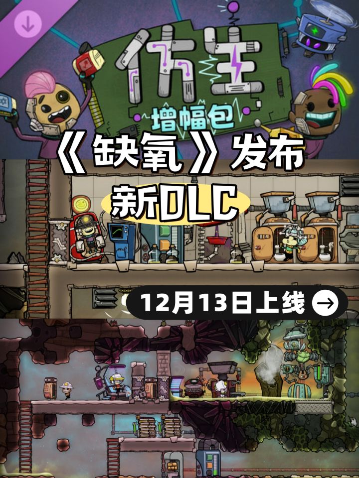 《缺氧》新DLC“仿生增幅包”于2024年12月13日在Steam、epic、WeGame上线,售价19元。新增便携式移动电源、远程作业建筑、与电相关的压力反应和喜悦反应的仿生复制人、可爱的飞行无人机、新物质、70+新蓝图......~~~~~~~~~~~~~~~~~~~~~省流版:·《仿生增幅包》引入新仿生复制人、仿生增幅块、便携式电力存储和远程作业建筑,革新劳动力。·仿生复制人能在低