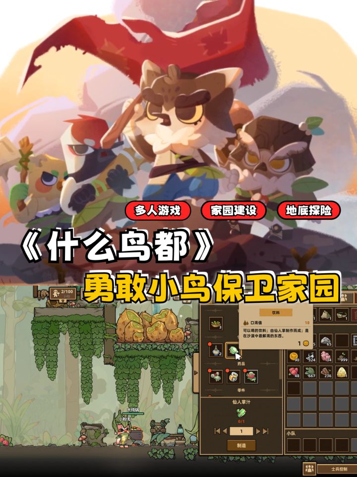 🎮 游戏名称:《什么鸟都》💻 游戏平台:steam🏷️ 游戏类型:策略、模拟、基地建设、生存游戏中,我们作为鸟族的首领,一方面需要建设各种生产设施,保证整个圣树城市的正常运作。包括为小鸟解决吃喝问题,还要为他们提供足够的住处。同时,还要保护小鸟不要被圣树上的蜘蛛给伤害。搞定了这些,我们就要面对小鸟最大的敌人,来自地底的虫族。每当红月升起,虫族就会从地底世界来到地面,对我们的圣树世界进行大肆破