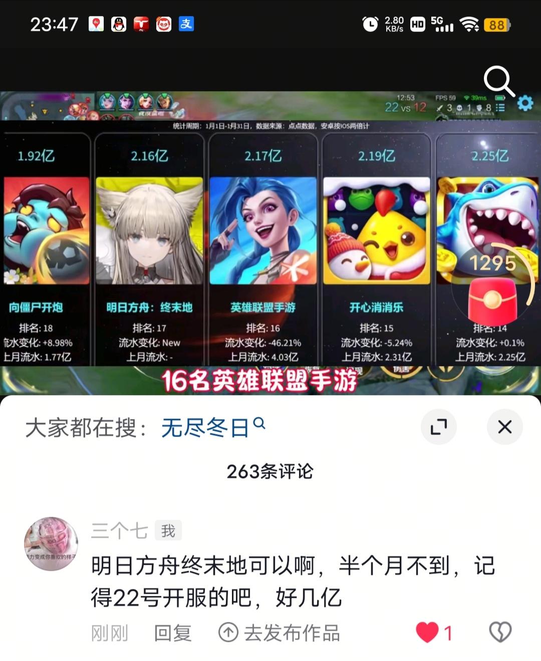 1月份流水,终末地22号上线,半个月不到,有这个成绩不错了吧,感觉回本一点问题没有啊?褒姒是不可能的了!