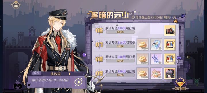 我喜欢这个衣装啊,结果这次活动累充的衣装是图二。该怎么说图一真的令我一眼心动啊,剧情里还有小表情,他又对我wink了(他心里有我)。诚然图二执政官雀食精致,看起来就华贵很多,但是我就偏爱图一这种系上发带的少年感,罗夏这身真的好甜,能不能以后单出啊就问。(/ω\)#游戏种草计划#游戏讨论#黑暗的远山#罗夏#衣装#游戏安利
