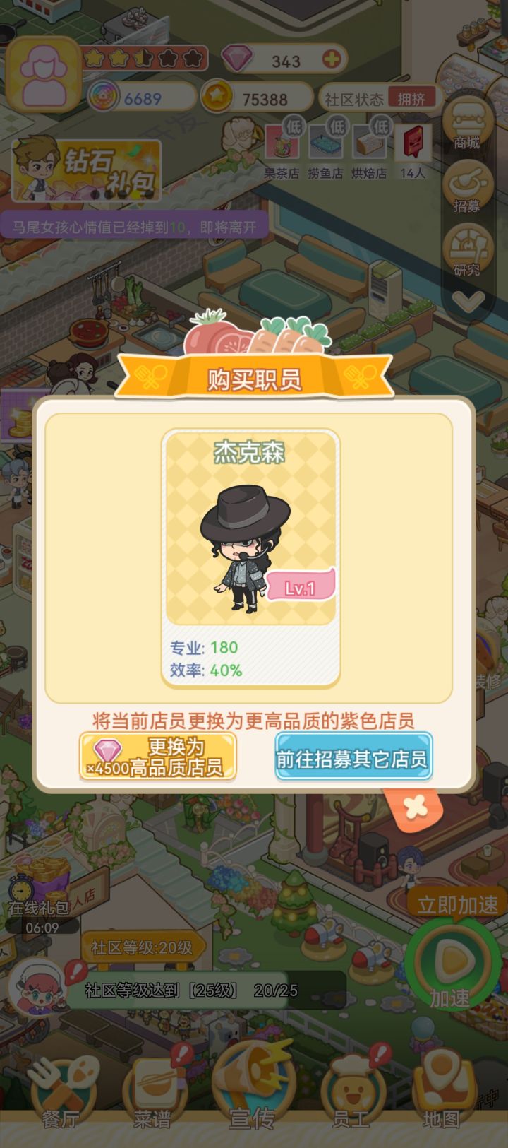不是,金色店员也要提升啊?那我再购买一个金色店员不也是失败吗?你这逼氪太严重了吧,卡在这个接待进行不下去了#美味连连