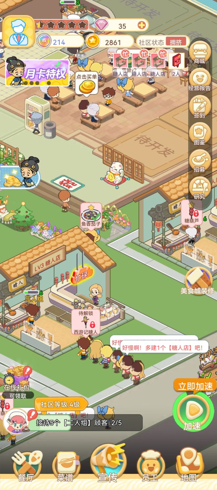 #美味连连 糖人店的队好长啊,怎么缩短时间?(本人新手,是升级了就能缩短时间吗,已经建了三个糖人店了)