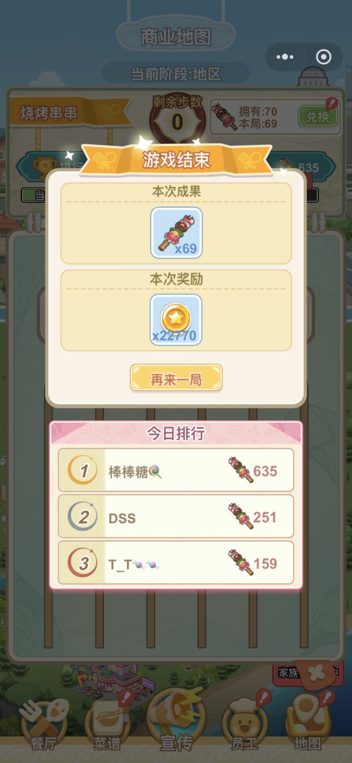 #噗噜噜实验室 游戏结束后应该得到69个串串,可是实际拥有里边却没有增加? #美味连连 @游戏懂哥