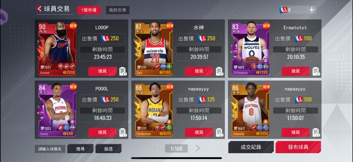 我自己玩老区就10几页交易市场,新区直接166页么 #美职篮篮球世界