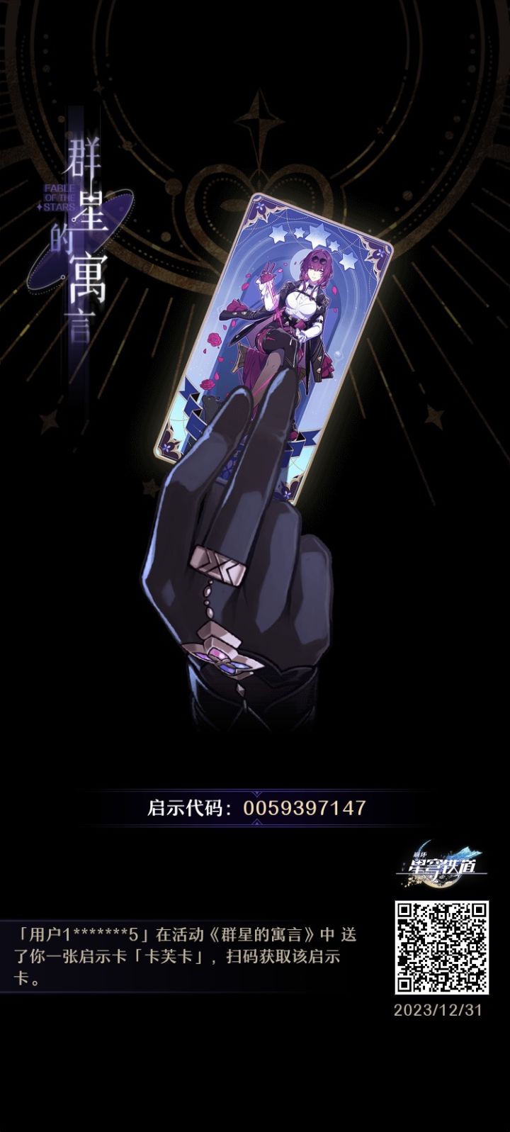 来互换呀~实在需要也可以换我拥有的,只要你有卡,能互换就行♡(*´∀`*)#崩坏星穹铁道#群星的寓言