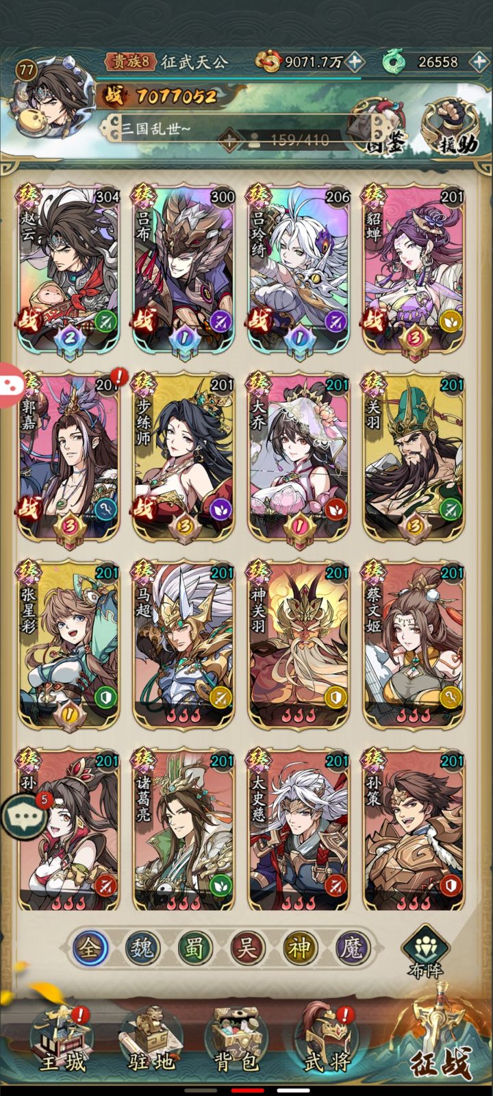 这是我阵容,神魔养不起,下个阶段把孙策神话,但问题是我这个战力打不过四十九万的试炼什么鬼#群英风华录日常