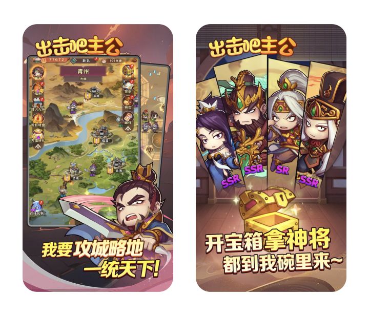 游戏标签🏷【解压】 【割草】 【养成】 【策略】 【三国】 【卡牌】 【Roguelike】💎《出击吧主公》是一款三国历史背景的割草解压手游,融合了Roguelike➕卡牌➕养成玩法。玩家将扮演将军,剿灭敌方城池中的叛军,攻城掠地,一统天下。💎💎👍多武将上阵,随心所欲DIY你的队伍👍单场战斗只有4~6分钟,简单不拖沓,让您沉浸在痛快淋漓的三国世界👍丰富的养成玩法➕豪爽的成就奖励👍