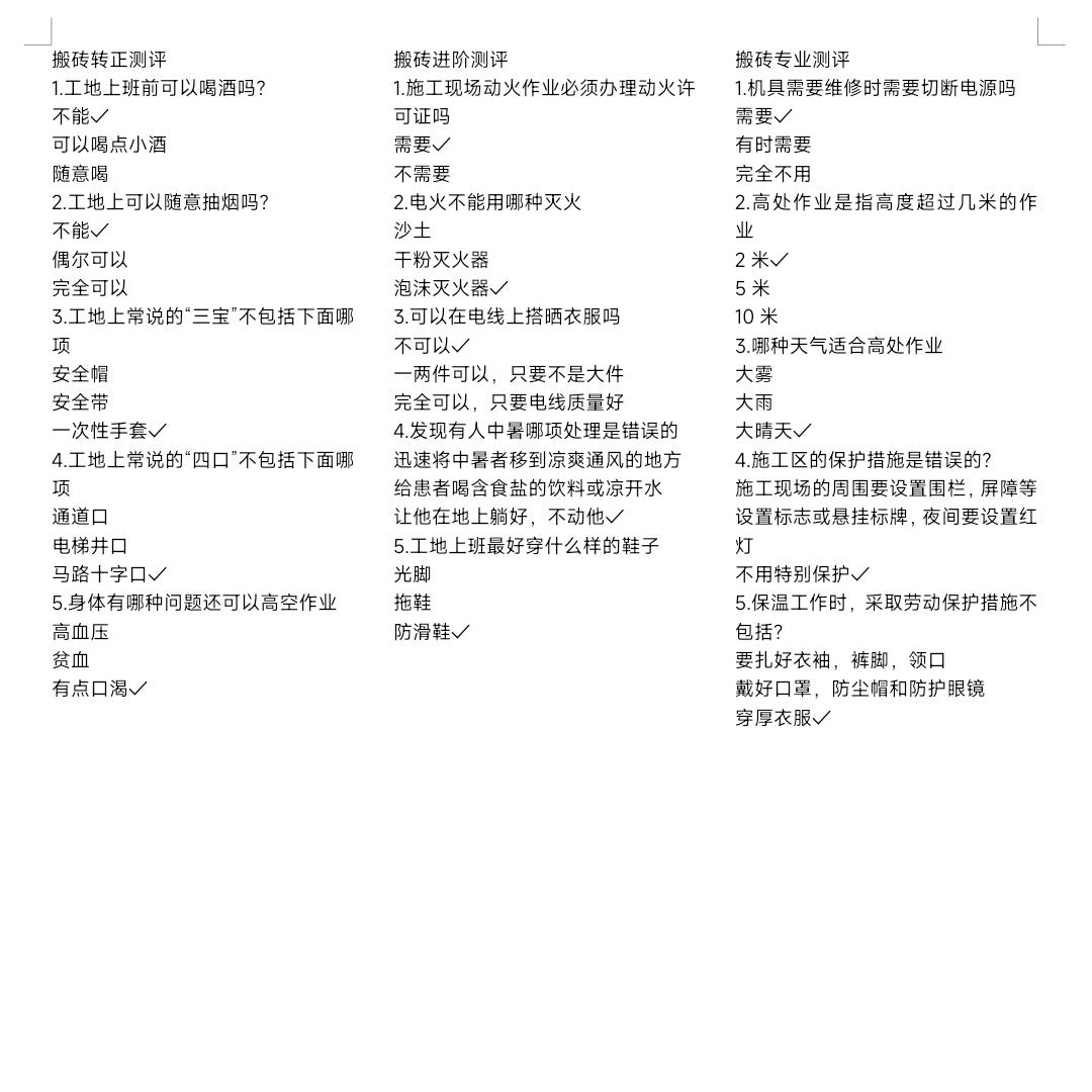 ——工薪 搬砖: 转正:AACCC 进阶:ACACC 专业:AACCC 工人: 转正:AAABA 进阶:ABCCB 专业:AAACB 保安: 转正:AABAA 进阶:ABCAA 专业:CCCAA ——小资 外卖: 转正:BABBA 进阶:ACACB 专业:CCCCC 服务员: 转正:BBCCC 进阶:CCBCC 专业:CCCCC 理发师: 转正:CBCCC 进阶:CACCA 专业:ACCCB ——