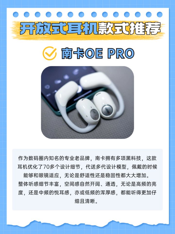 有没有和我一样对数码产品一窍不通的宝子!! 新手小白想找个开放式耳机真的好迷茫啊, 跟风乱买又很容易踩雷!! 所以借这次我自己也整理了一些开放式耳机。 认真做了会功课,总结了一些好用不踩雷的开放式耳机, 不会选的姐妹直接看这篇! -南卡OE MIX:性价比首选,舒适度与音质的集合体 -QCY Crossk GTR:自由式佩戴,适合运动 -Cleer ARC II:版本种类多,适用范围广 -南卡OE