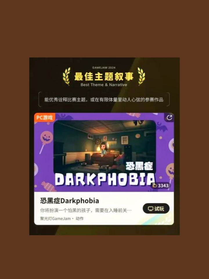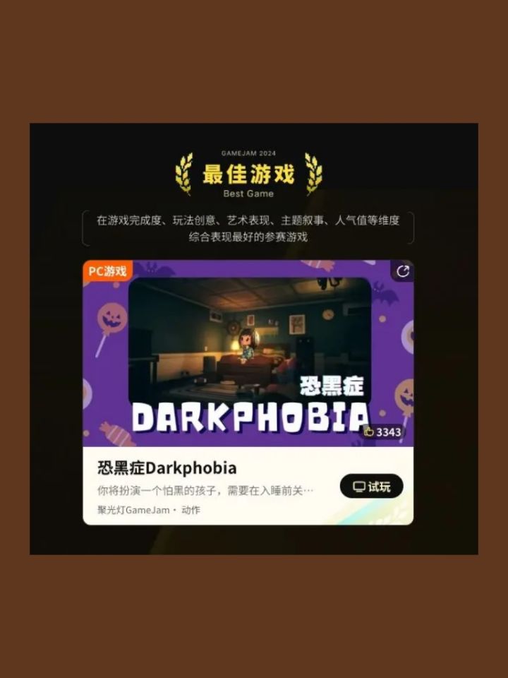 感谢大家从游戏demo发布以来我们的喜爱和支持,「恐黑症Darkphobia」终于在#聚光灯游戏创作挑战 中不仅拿下大奖【最佳游戏】,还拿到了【最佳主题叙事】奖,喵们真的非常非常激动!!「维他喵Vitameow」团队的成员来自不同的游戏公司,一帮全职牛马利用下班时间,和黑夜赛跑,从缝隙里挤出的时间来做出的这款游戏,真·为爱发电!看着我们的女儿拿到奖,真的又欣慰又自豪😭