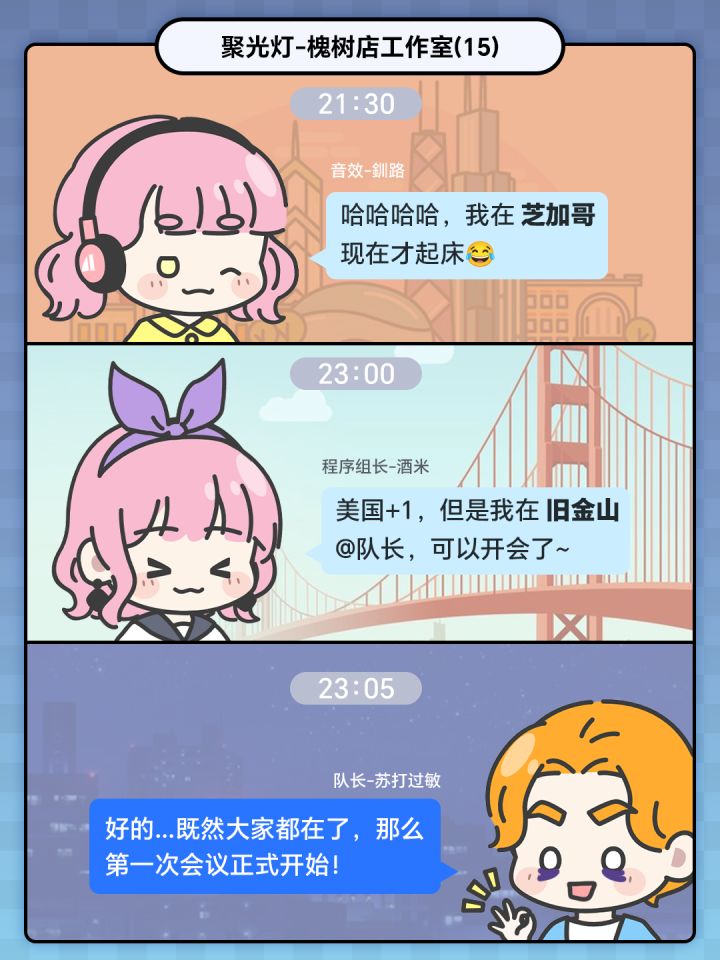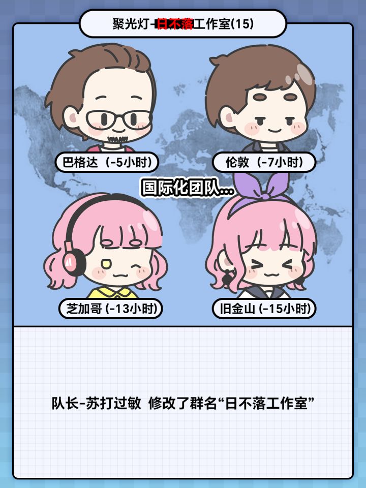 哇塞!参加[TapTap聚光灯游戏创作挑战]组队成功后,大家那叫一个积极活跃✨,简直就像一家人似的,相亲相爱,欢乐氛围满格,其乐融融得不要不要的。开心开心开心 震惊震惊震惊可是没想到头一次开会就遭遇了个超级大问题。石化咱这队伍一不小心就成了国际化天团,有的队友们竟然不在一个时区。 ✨今天必须正