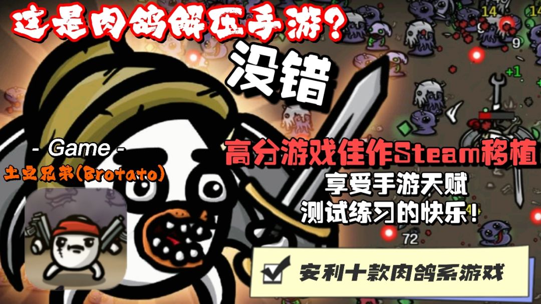#跨文化交流小组 ##土豆兄弟brotato #肉鸽解压 #肉鸽 #解压 土豆兄弟Brotato来袭!Steam超2万玩家97%好评,肉鸽动作策略等你战!
