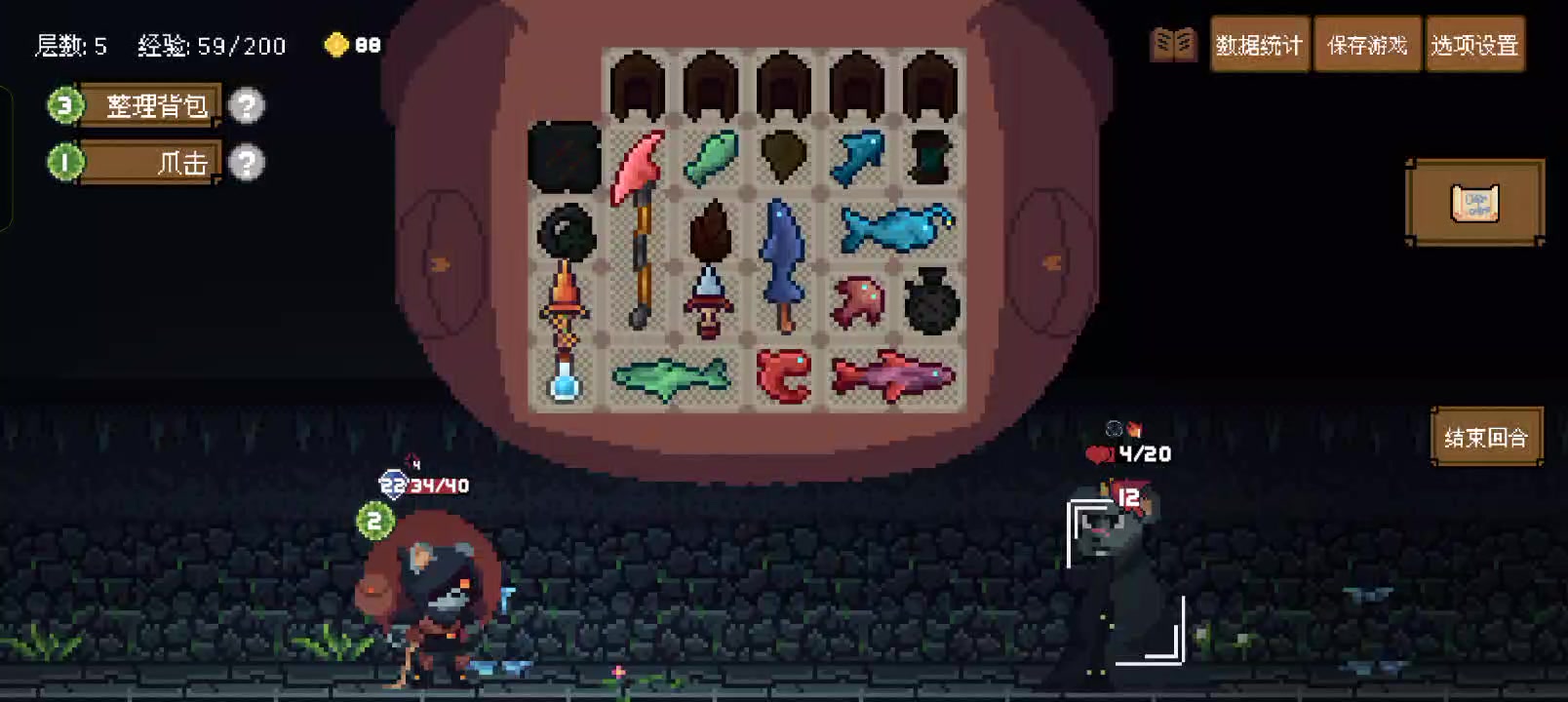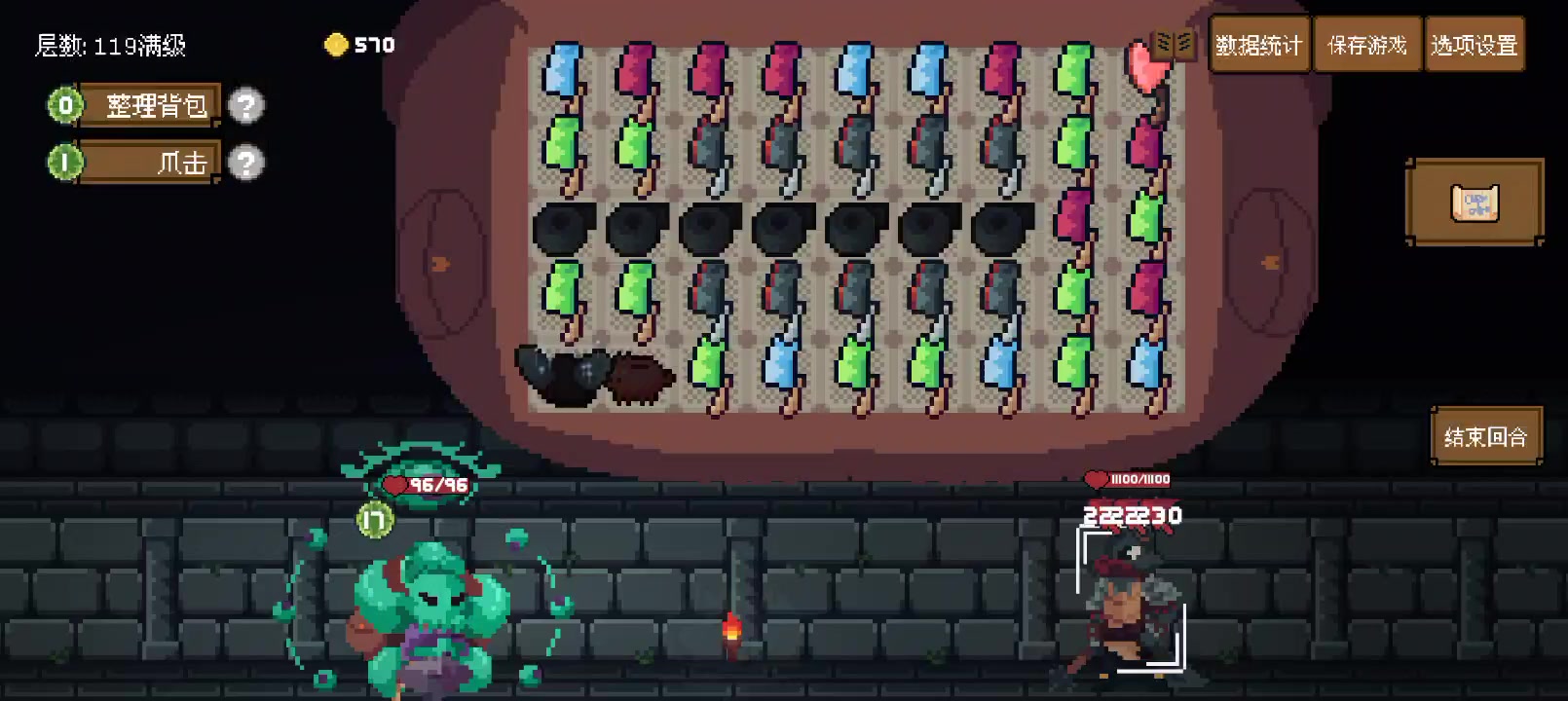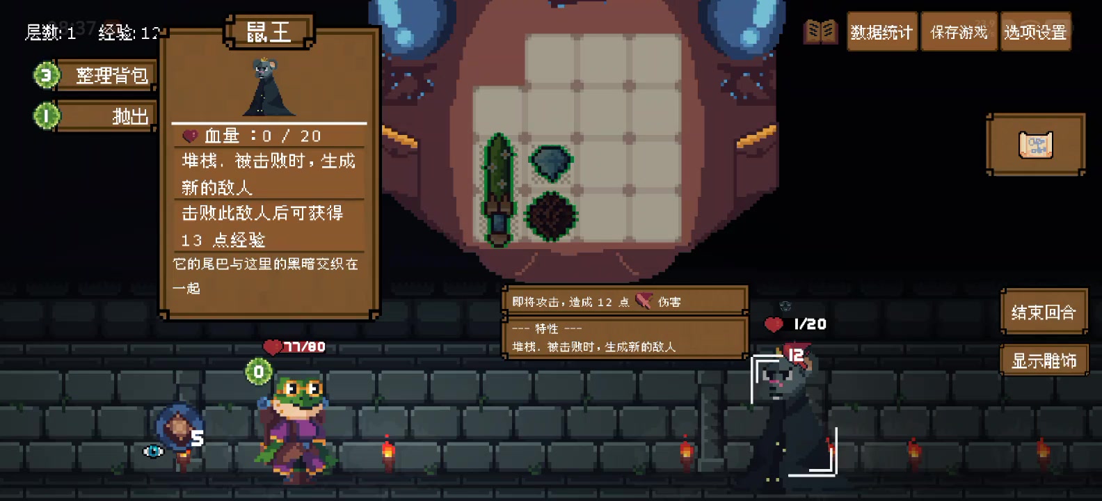 打鼠王被卡住了,应该被打死的可是没有反应,之后点武器还有回合结束都没有反应 #背包英雄