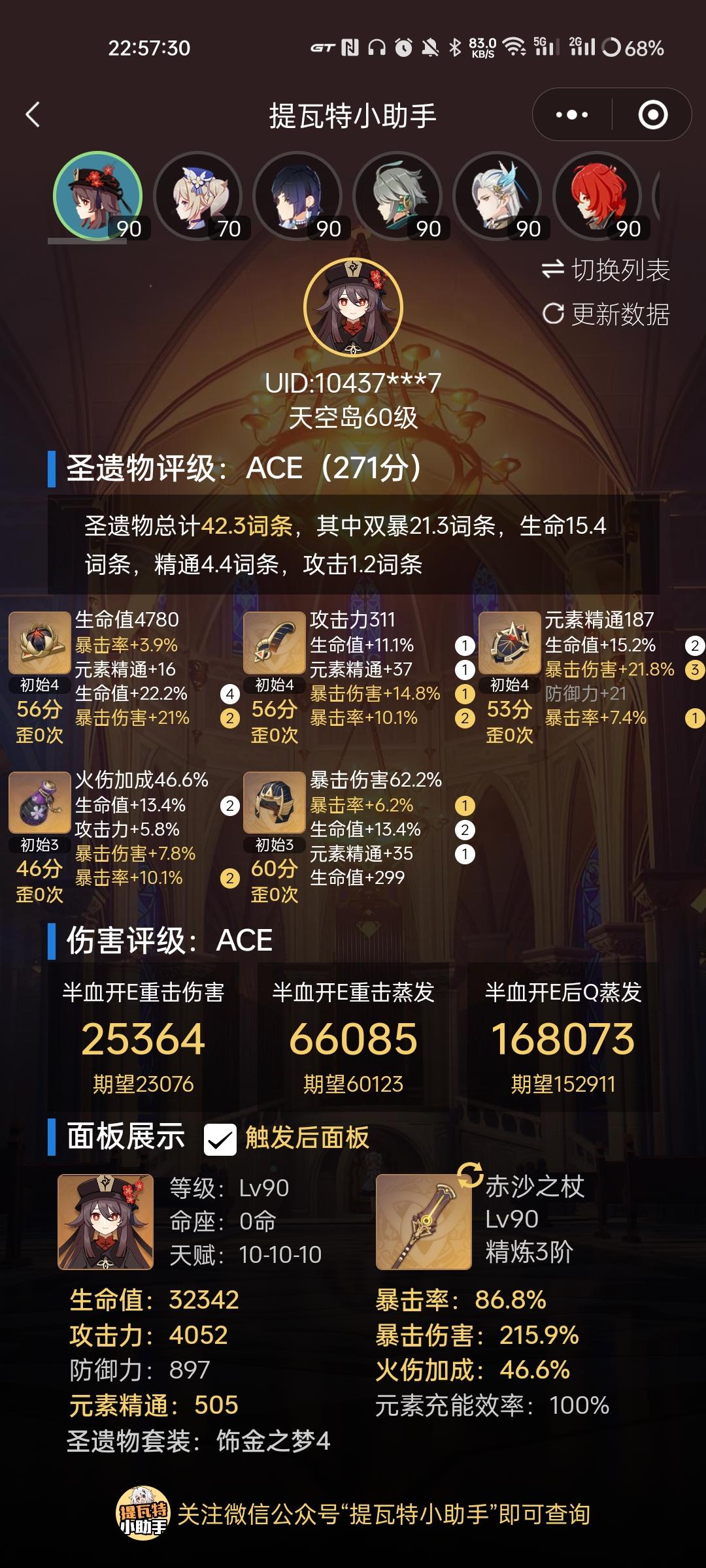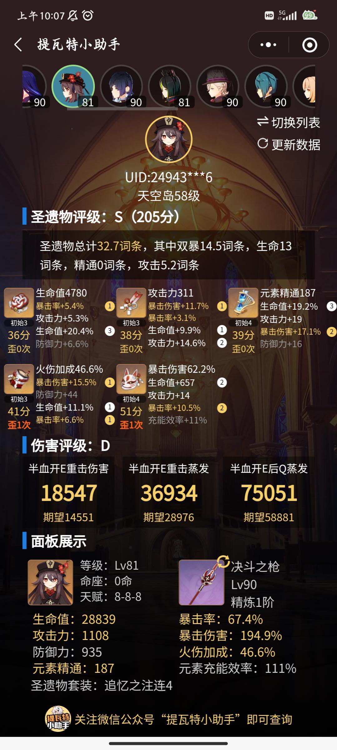 胡桃玩家好卷啊。。这样子的面板伤害评级都只有D吗。。开摆了开摆了#胡桃
