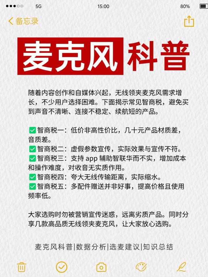 领夹麦克风/领夹麦/麦克风/自媒体/短视频/直播/无线麦克风/收音麦克风/无线领夹麦克风/无线麦/自媒体干货/录制/音频设备/直播麦克风/干货分享/vlog设备-跟风选的无线领夹麦克风踩雷率 80%。并不是夸大其词,实在是品牌众多、性能各异。智商税不少,真的很容易踩雷。所以大家在选的时候,尤其是新手们,一定要做足功课再买。分享给大家几个选无线领夹麦克风的小技巧~-------❤ 看