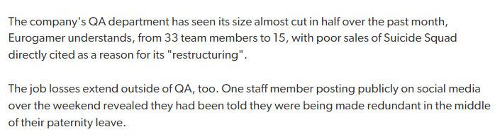 《自杀小队》开发商裁员❓半点都不吃惊😅😅😅