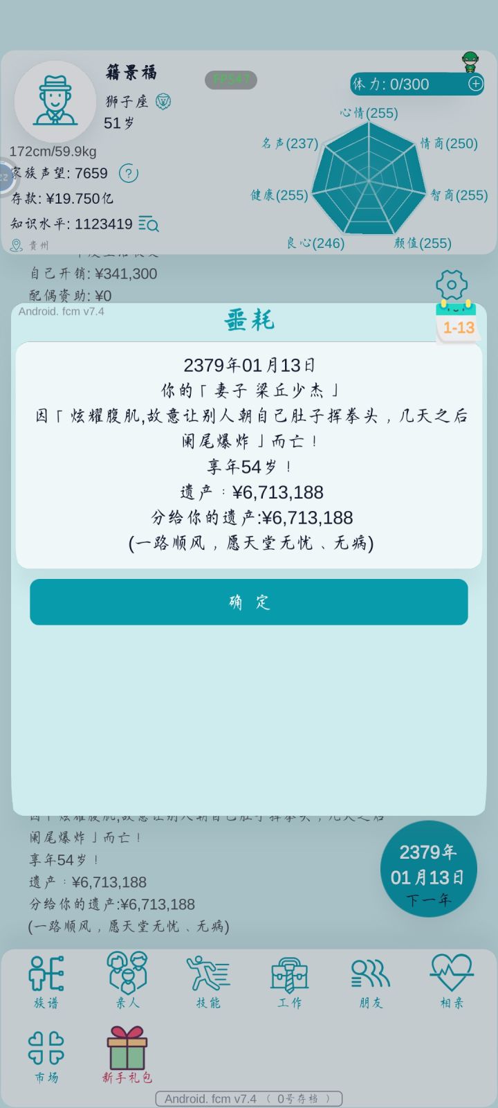 分享一下我老婆的死亡方式“炫耀腹肌,故意让别人朝自己肚子挥拳头,几天后阑尾爆炸而亡”这真是 泰酷辣!!!#自由人生模拟#游戏讨论#游戏安利