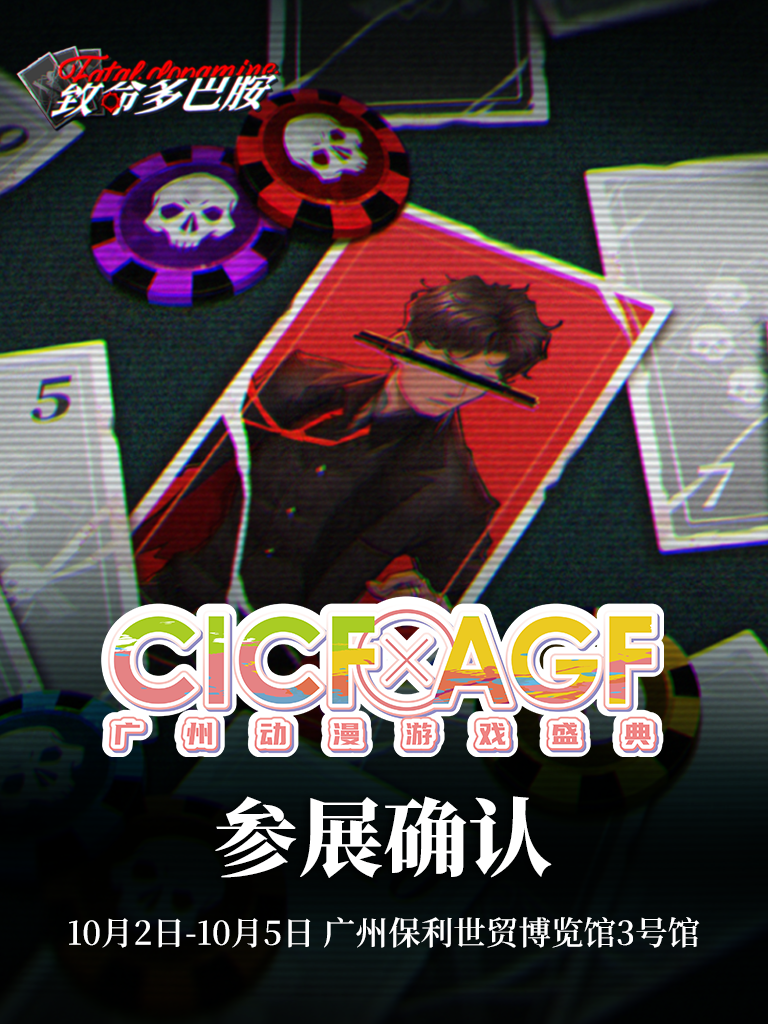 各位玩家好![心动小镇_点赞] 《致命多巴胺》确认参展2025CICF×AGF 10月2号~5号 每日09:00-17:00,我们在广州保利世贸博览馆(3号馆)等你来! 本次我们携带了绝赞全新版本供大家体验, 制作团队也会在现场刷新,大家有什么建议都请狠狠鞭笞我们! 来不了现场的小伙伴也不用担心,后续我们也会开放新版本的线上测试! [心动小镇_微笑]以下是我们游戏的简介[心动小镇_微笑]#发现好游