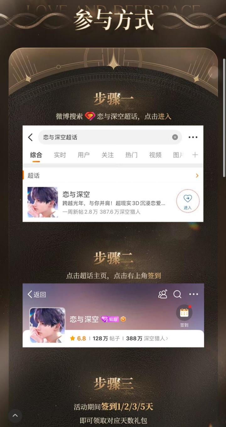 ❶tap签到累计五天领取50钻 ❷微博#恋与深空 签到累计五天领取50钻 签到二选一即可。多个账号的可以俩同时签 兑换码只能使用一次,打算自己用的,就别分享兑换码了 超话那个也可以设一个小图标,快速签到◔.̮◔✧ (设置步骤见图7) #恋与深空一周年 #恋与深空万象遇你 #恋与深空夏以昼 #恋与深空攻略 #沈星回 #沈星回 #祁煜 #致爱临空 #黎深 #秦彻