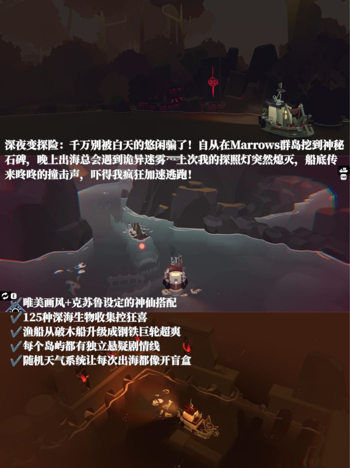 👾游戏名称:《渔帆暗涌》🏷️关键词:steam移植|克苏鲁|航海|捕鱼|休闲🎮平台:TAPTAP(点击下方预约🔝论坛置顶有手机版下载教程)——👉宝宝们!最近挖到一款让我疯狂上头的航海游戏《渔帆暗涌》,必须安利给你们!刚开始被绝美画风骗进去——夕阳下的波光粼粼超治愈,结果深夜出海直接给我吓出鸡皮疙瘩!✨欧尼酱体验报告: 1️⃣ 白天当渔娘:开着我的小破船穿梭在群岛之间,和岛上原住民唠嗑接