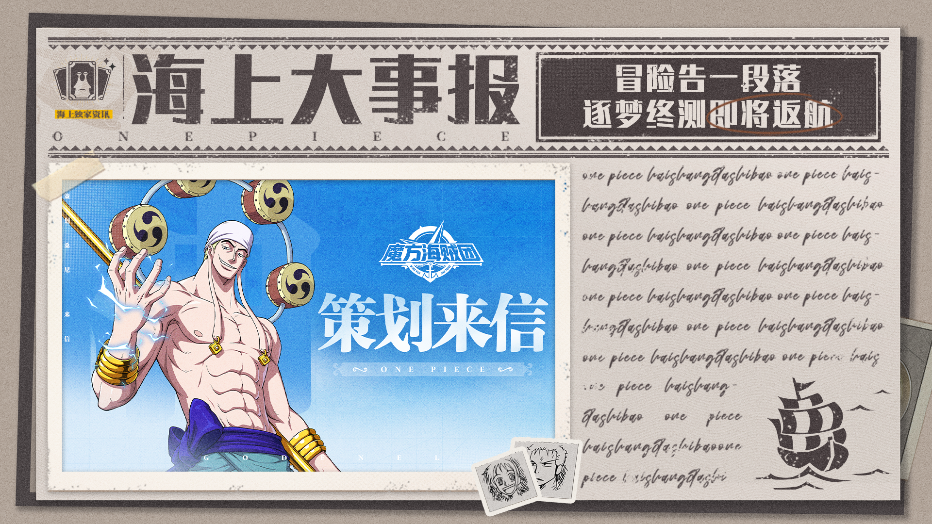 金币福利迎来大调整,20张限定招募券即将派送! 继米霍克后的第二位限定伙伴确认为「火拳」艾斯, 多尔顿、佳妮法、Ms.全周日、Mr.5、Ms.情人节等多位新伙伴即将登场, 策划桑尼还给我们带来哪些新消息? 一起来看看吧! #航海王壮志雄心上线 #航海王壮志雄心正式上线 #航海王壮志雄心 #魔方海贼团 #桑尼来信 #策划来信 #更新解读