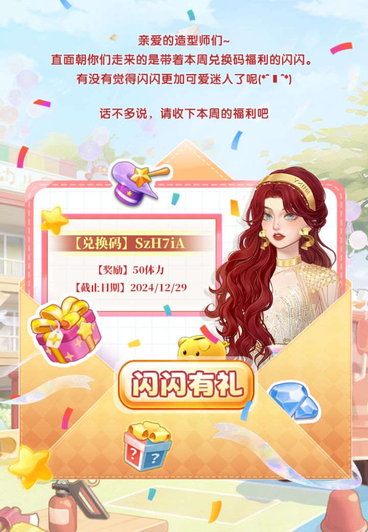 亲爱的造型师们,请收下本周的福利吧~*兑换方式:进入游戏后点击主界面“手机”—点击“兑换码”—输入游戏“礼包码”,成功兑换。数量有限,先到先得!赶快进入【闪亮大作战】游戏中兑换本周福利礼包吧!#休闲游戏 #女生游戏 #小兰花到访闪亮大作战 #换装游戏 #苍兰诀 #闪亮大作战 #闪亮大作战联动苍兰诀 #换装