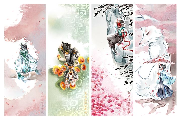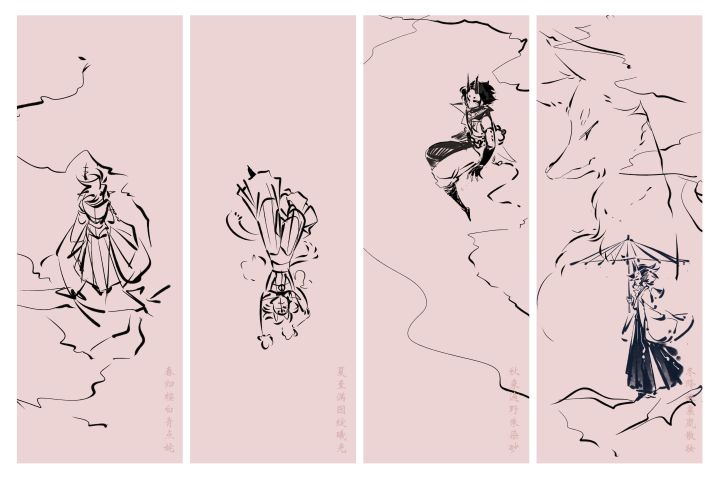 还是画了苍牙,从左到右分别是:樱花,向日葵,格桑花,梅花每个季节的右下角都有自己的写的诗~凑在一起刚好是春夏秋冬哦!。:.゚ヽ(*´∀`)ノ゚.:#忍者必须死3 #苍牙