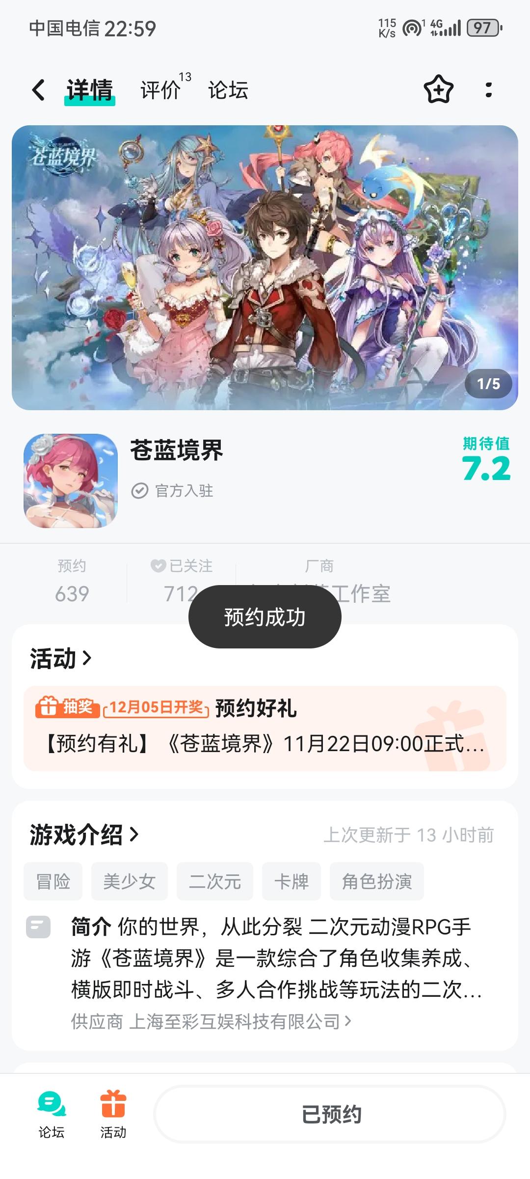 苍蓝境界#苍蓝境界 11月22日9点正式开启预约!