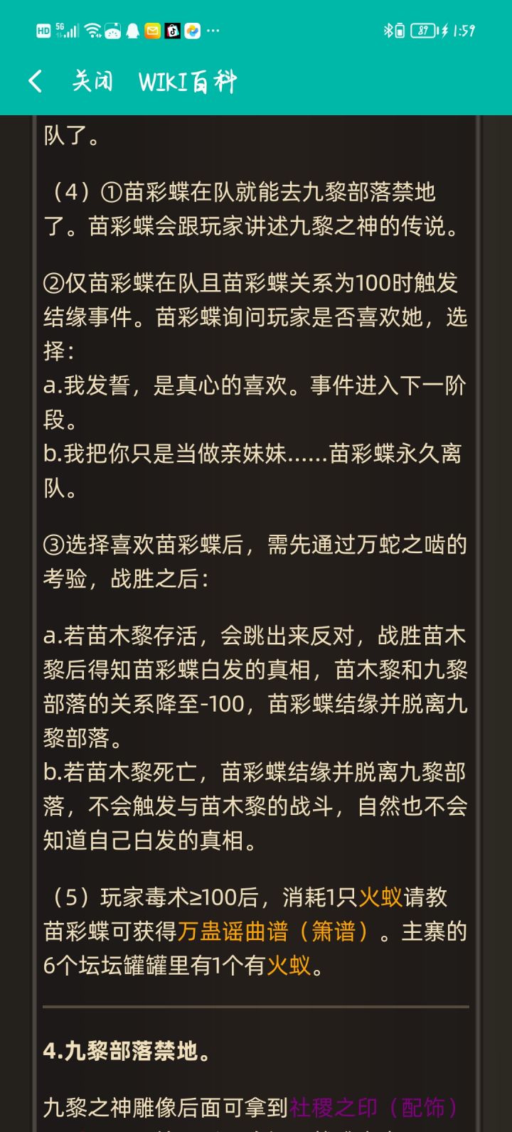 各位大佬,萌新刚玩,刚开始没看攻略,后花园错过了彩蝶,选的帮妙音房,现在九黎见我就打,关键在九黎里,没看到彩蝶,想问下还有救嘛?彩蝶在哪。谢谢各位大侠。#大侠立志传 #萌新求助 #求助 #求助大佬 #苗彩蝶 #九黎