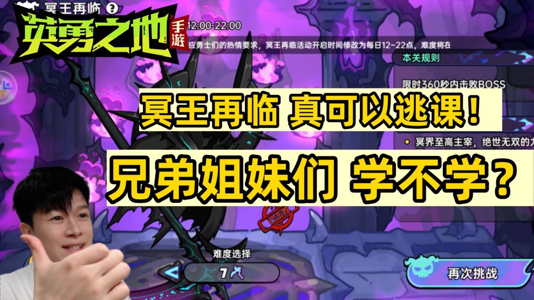 【英勇之地手游】难度7 冥王再临 逃课技巧 兄弟们发不发?