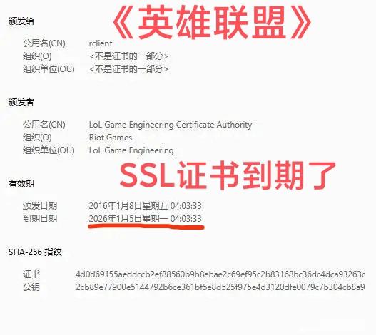 《英雄联盟》全球停服:SSL证书过期辟谣