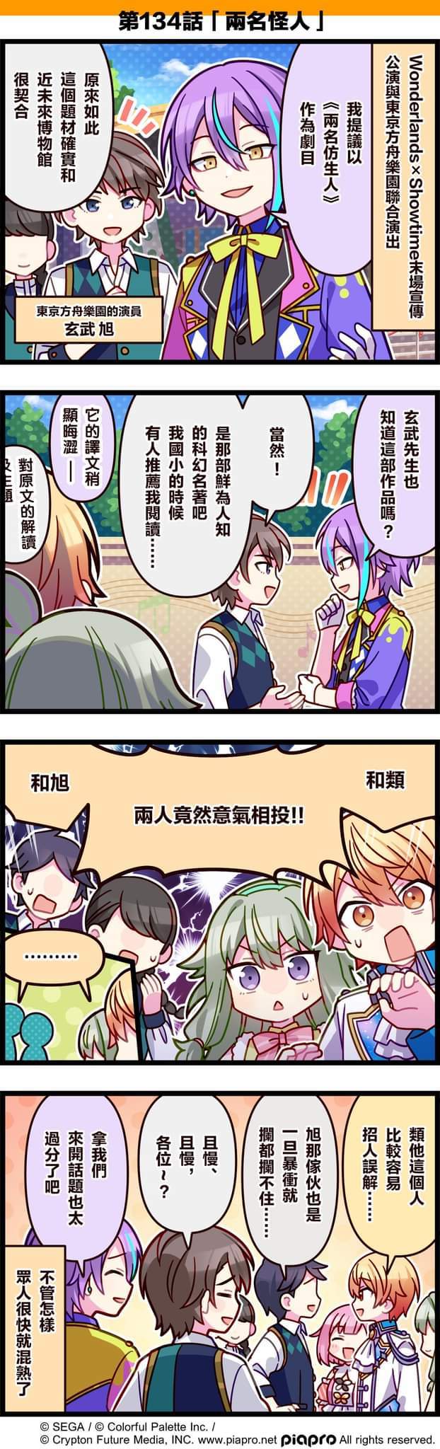 【「世界」劇場 四格漫畫】 尊敬的各位居民: 今日是關於天馬司和草薙寧寧、神代類的小故事~ 第134話「兩名怪人」💦 #pjsk #世界计划 #天马司 #草莓宁宁 #神代类