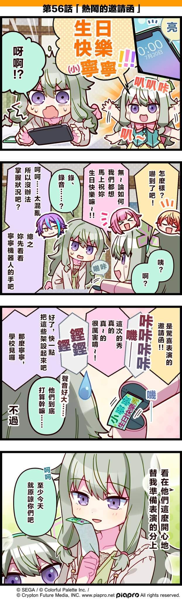 【「世界」劇場 四格漫畫】 尊敬的各位居民: 今日是關於草薙寧寧的小故事~ 同時,今天也是她的生日💕 讓我們一起來祝草薙寧寧生日快樂吧~ 第56話「熱鬧的邀請函」 #pjsk#世界计划#草莓宁宁#草莓宁宁生日快乐