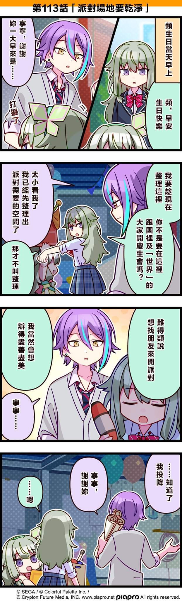 【「世界」劇場 四格漫畫】 尊敬的各位居民: 今天6/24是 Wonderlands×Showtime成員「神代類」的生日!🍰 來看看關於神代類的小故事吧~ 第113話「派對場地要乾淨」🎉 #PJSK #世界計畫 #神代類 #草薙寧寧#pjsk #世界计划#神代类 #草莓宁宁