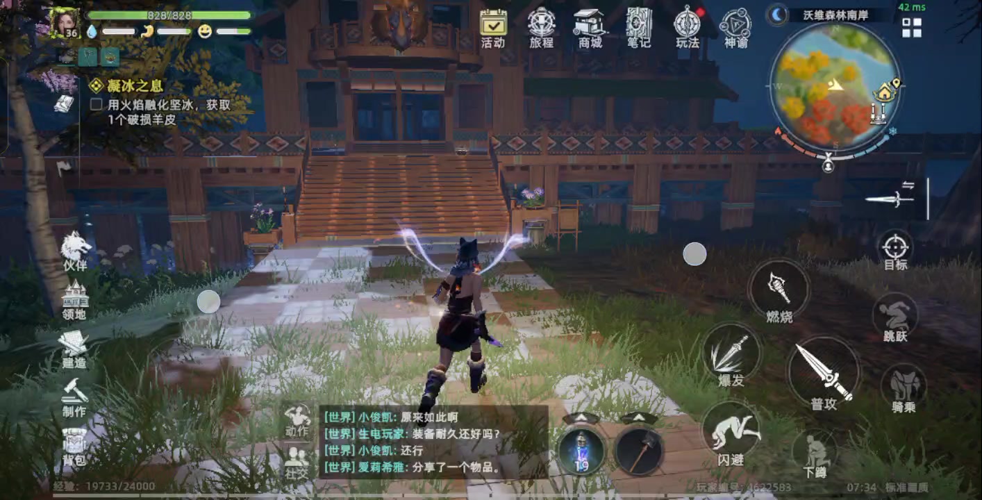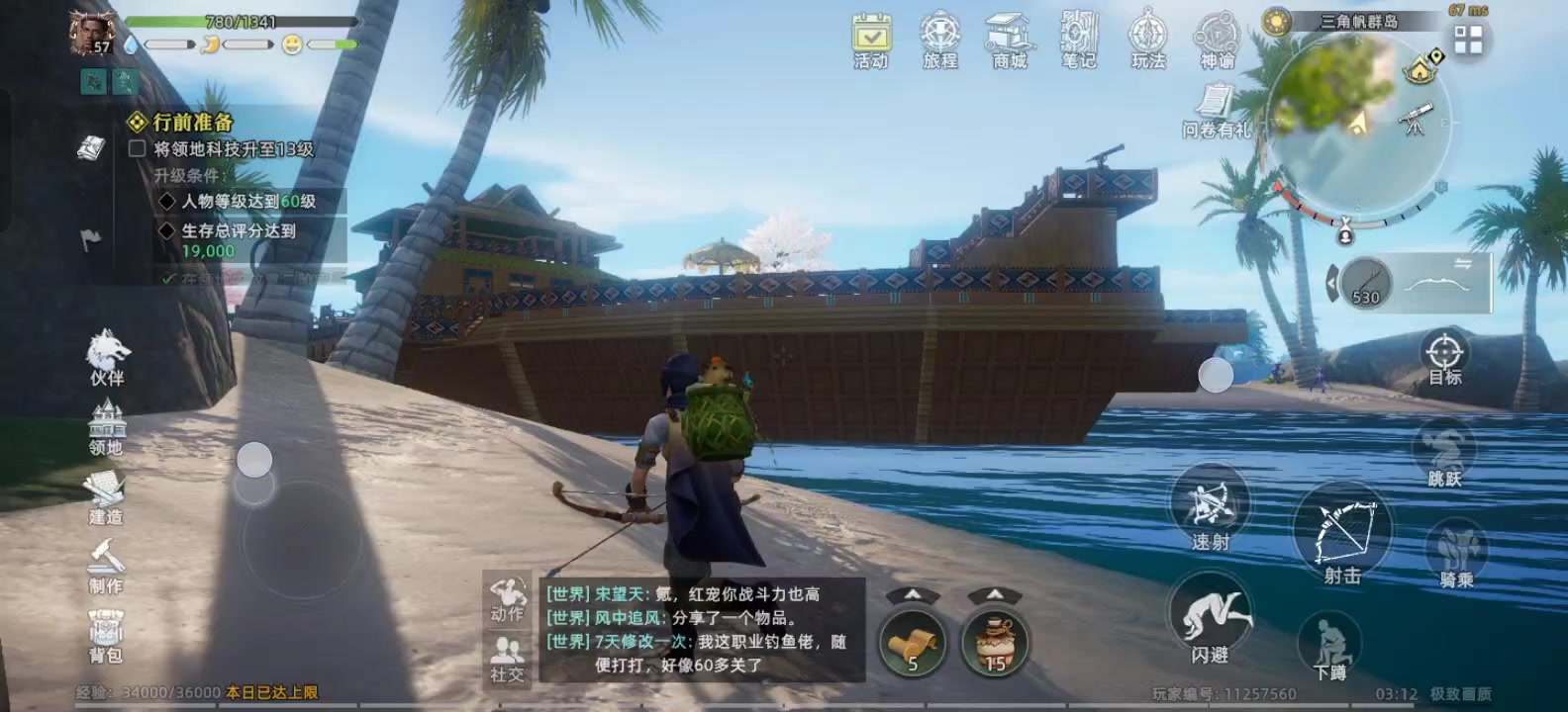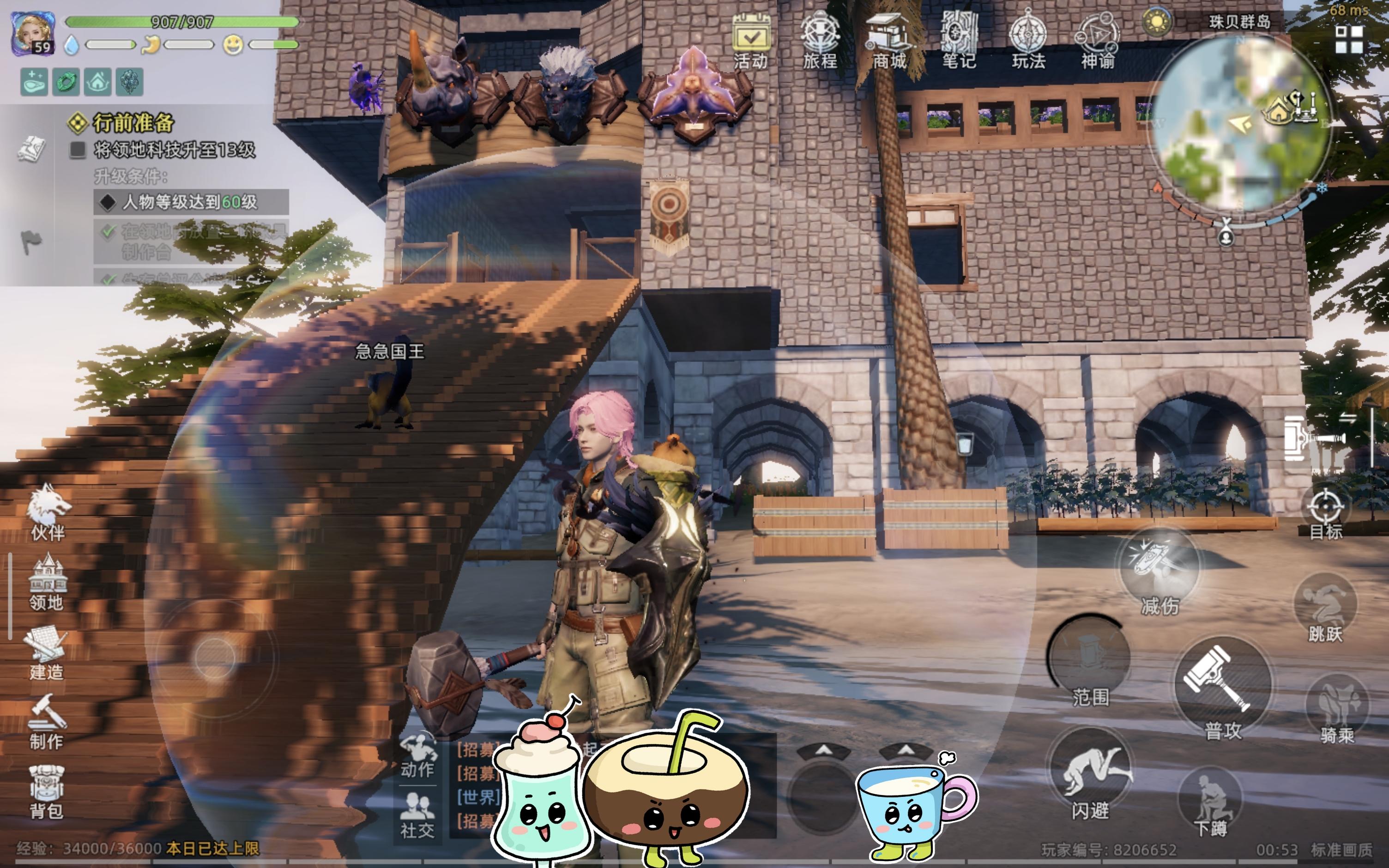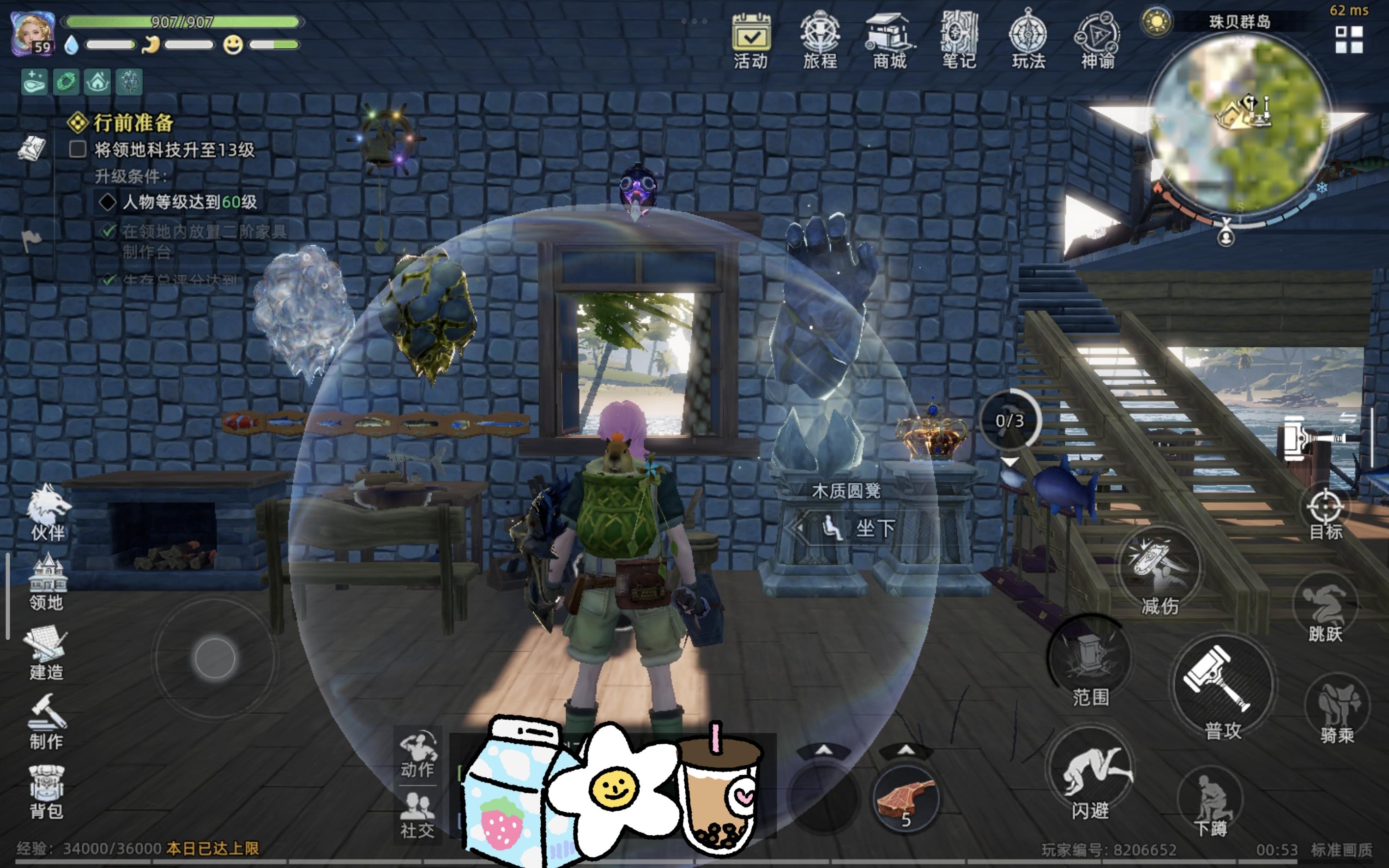 #荒原曙光温暖社交 像我这样的采集狂魔~每天都是修房子,采集野果种子,并不是很喜欢过任务,刷怪,没有什么宠物还有装备,打怪也打不过,更别说过海了,只能用笨方法,搭桥过去啦~有了这个大桥,就可以直接过去解锁新地图啦~不过还没去对面采集过呢,也不知道有什么野果,在1-63-4分线哟