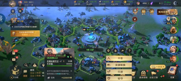 很多玩家在游戏中搬家后就找不到开垦地在哪里了,今天教一下大家如何找到主城开垦地,首先点击主城,然后在主城下有个开垦地的按钮,点击就可以找到开垦地,开垦地不需要你拉部队过去,只需要选择想要开垦的土地,主力会直接从纪念碑中出发开垦土地,并且在这里我要教给大家两个小技巧! 第一个,我们可以对开垦地进行资源转换,合理调整自己的资源比例,当然他是有cd的,不过并不长,通过这样来更快的发育开荒。第二个小技
