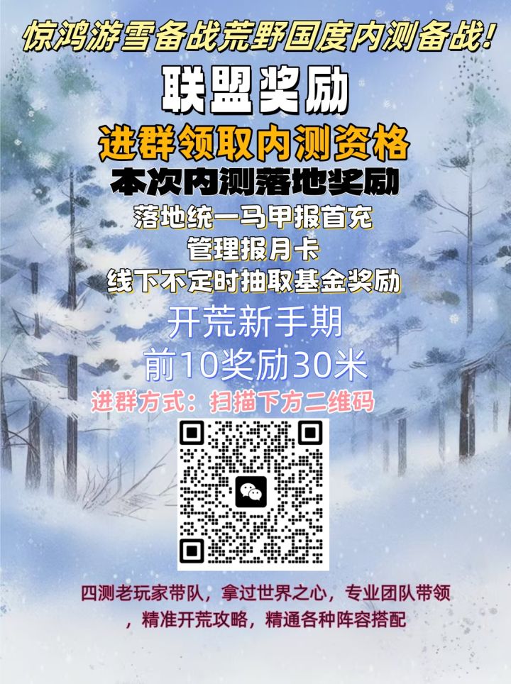 荒野国度内测阶段备战中,内测时间是12月24号,感兴趣的可以加入微信群,到时候一起玩!每晚9点准时发红包活跃气氛!手气王凭截图内测送首充月卡!(24号群里发布内测链接)#荒野国度启扬帆测试