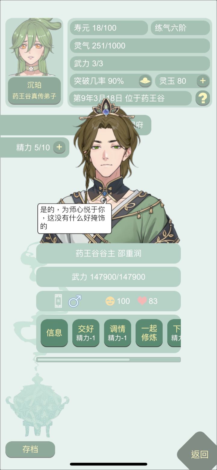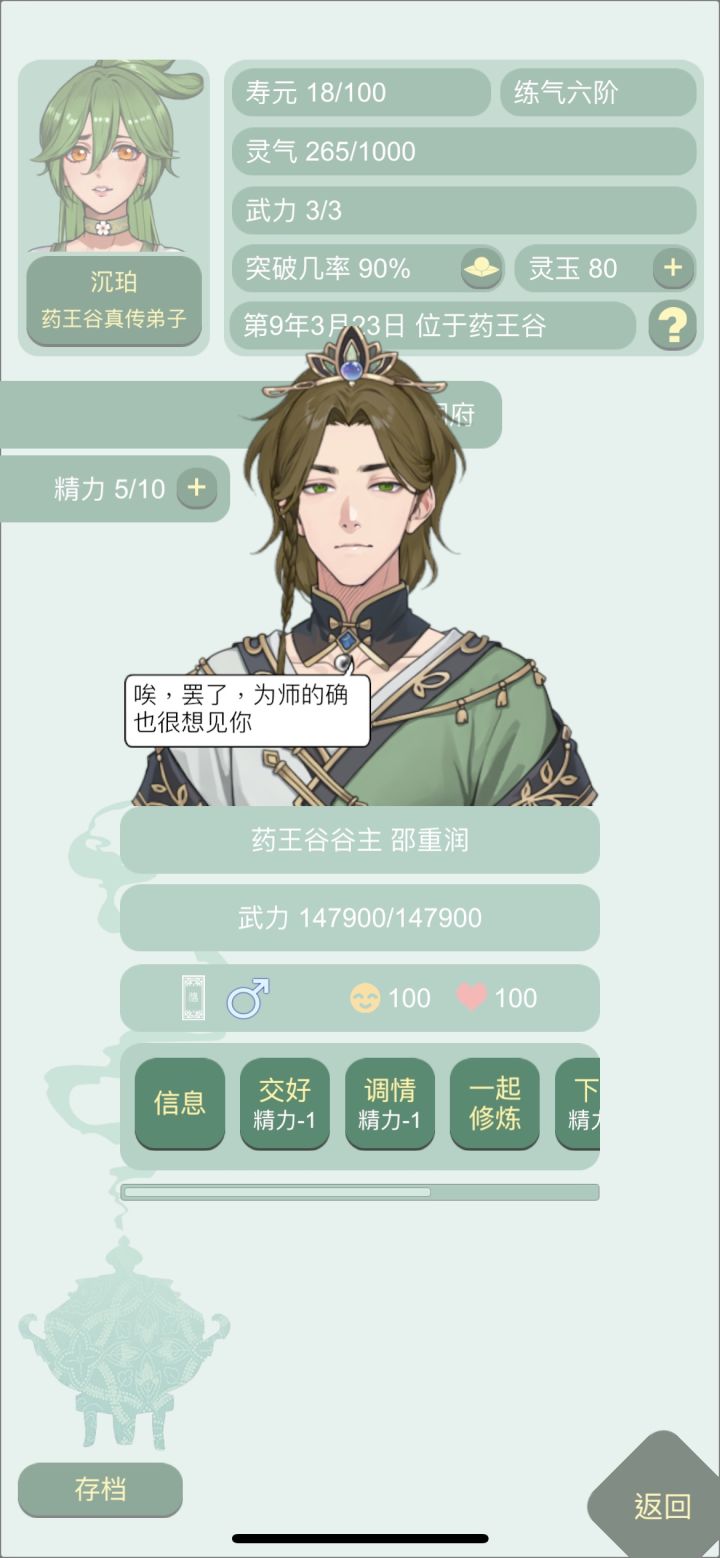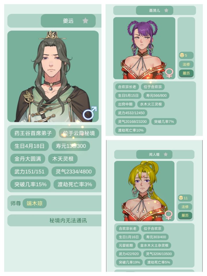 之前每次开新档,前期就算拜谷主为师,打怪还感觉不够强,时不时就要失败一下,特别对于前期没战力、药也不够多的我们很不友好,于是被我发现战力可以在开局sl的办法!首先先开新档,当第一个大弟子来领你进门的时候,点开他or她主页,查看师尊。一般这个弟子的师傅都是谷主,直接查看,如果感觉战力不够立刻重开。谷主战力高的好处→意味着万剑山掌门和剑尊的战力会更高(因为丹修同阶级战力—50%),开