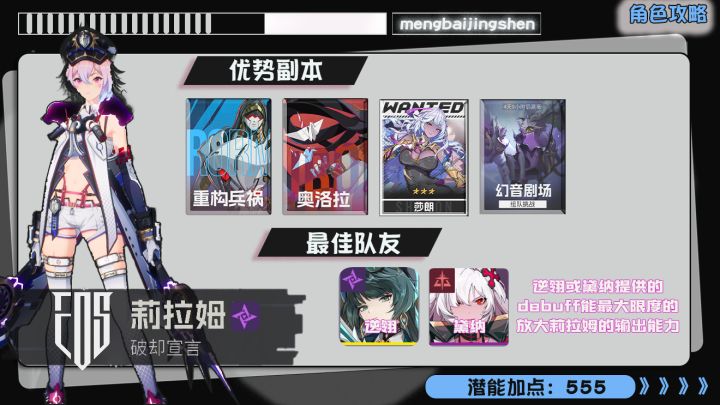 1、DOT逃课高难请将源器全换为生存词条。2、控制依赖拿鹤的减防控制大大提高莉拉姆的生存及输出,pvp同样可玩(pvp篇再细讲)3、普攻队荼蘼的普攻增伤和罗喉的多动可以说相辅相成。因为罗喉大招提供的防御加成只持续2回合,而冷却是四回合,所以需要梨梨增益罗喉。如果用水月真,则将渺渺替换为其他增益或拉条角色。或选择荼蘼+罗喉+水月真。4、复活流对群能力较差,打不了多琪本。常规本想不