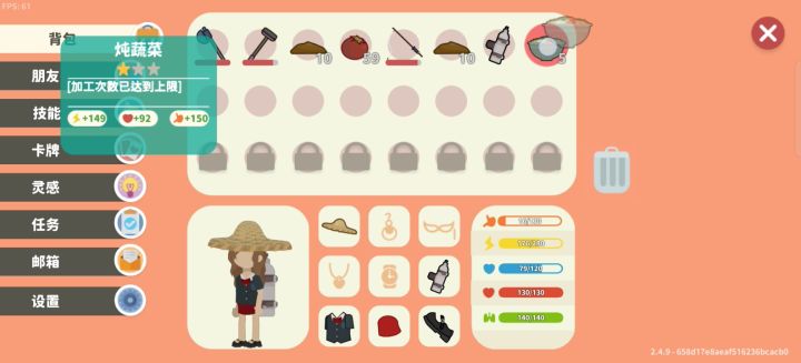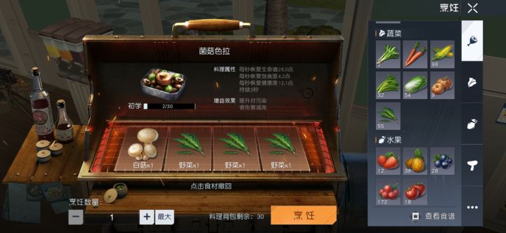 准备工作准备一个电饭锅准备钓鱼竿去海里钓四条小丑鱼上竹林用镰刀割到两个莓果和一个口蘑然后先把四条小丑鱼放进电饭锅里获得水煮肉再把水煮肉,两个莓果,一个口蘑放进电饭锅获得炖蔬菜先别吃,往电饭锅里随便放一个蔬菜,获得炖蔬菜,数值就卡出来了,然后重复这个动作,一部分放冰箱,不够了就拿出来一个,待一会会解冻,然后往电饭锅里放蔬菜,如此往复,就再也不怕下海没精力#小生活悠闲小镇物语 #菜谱