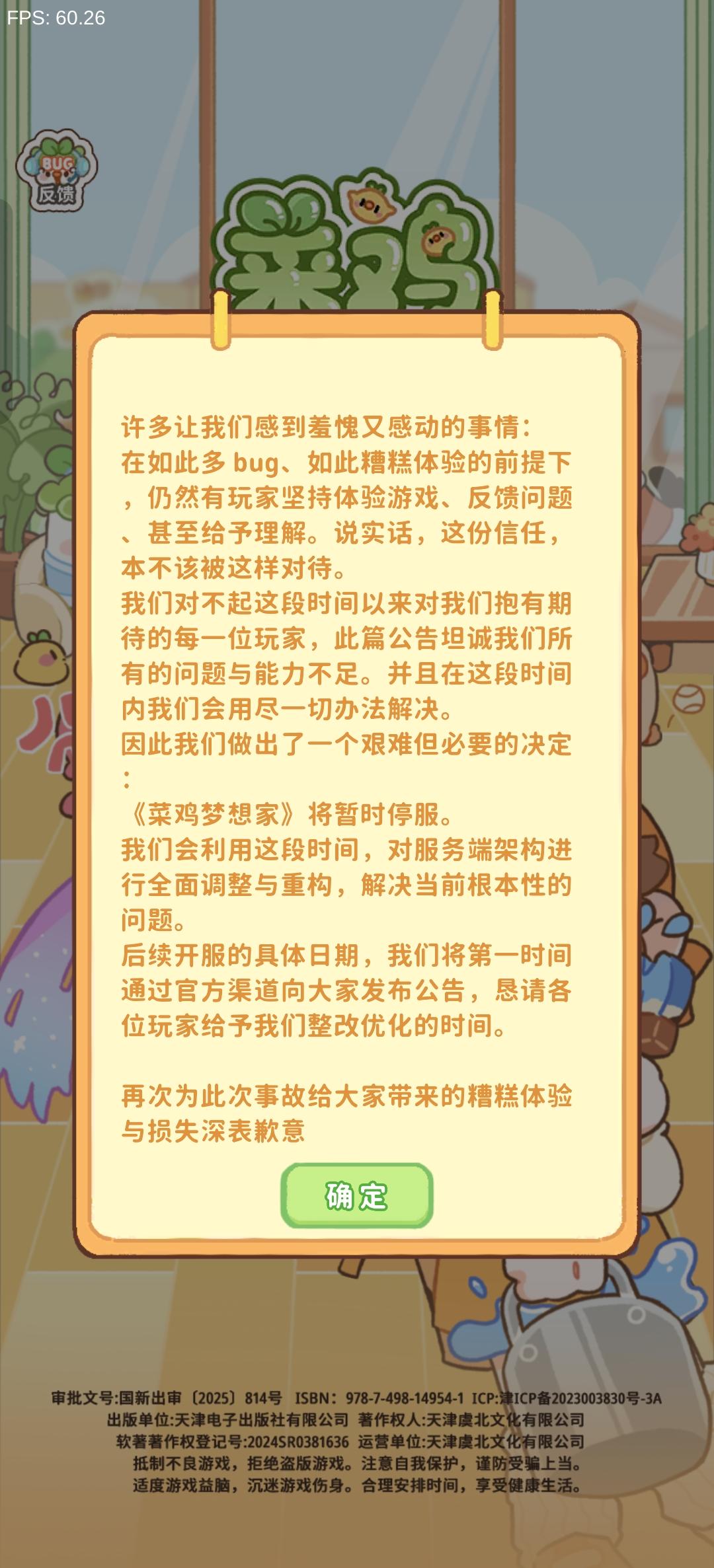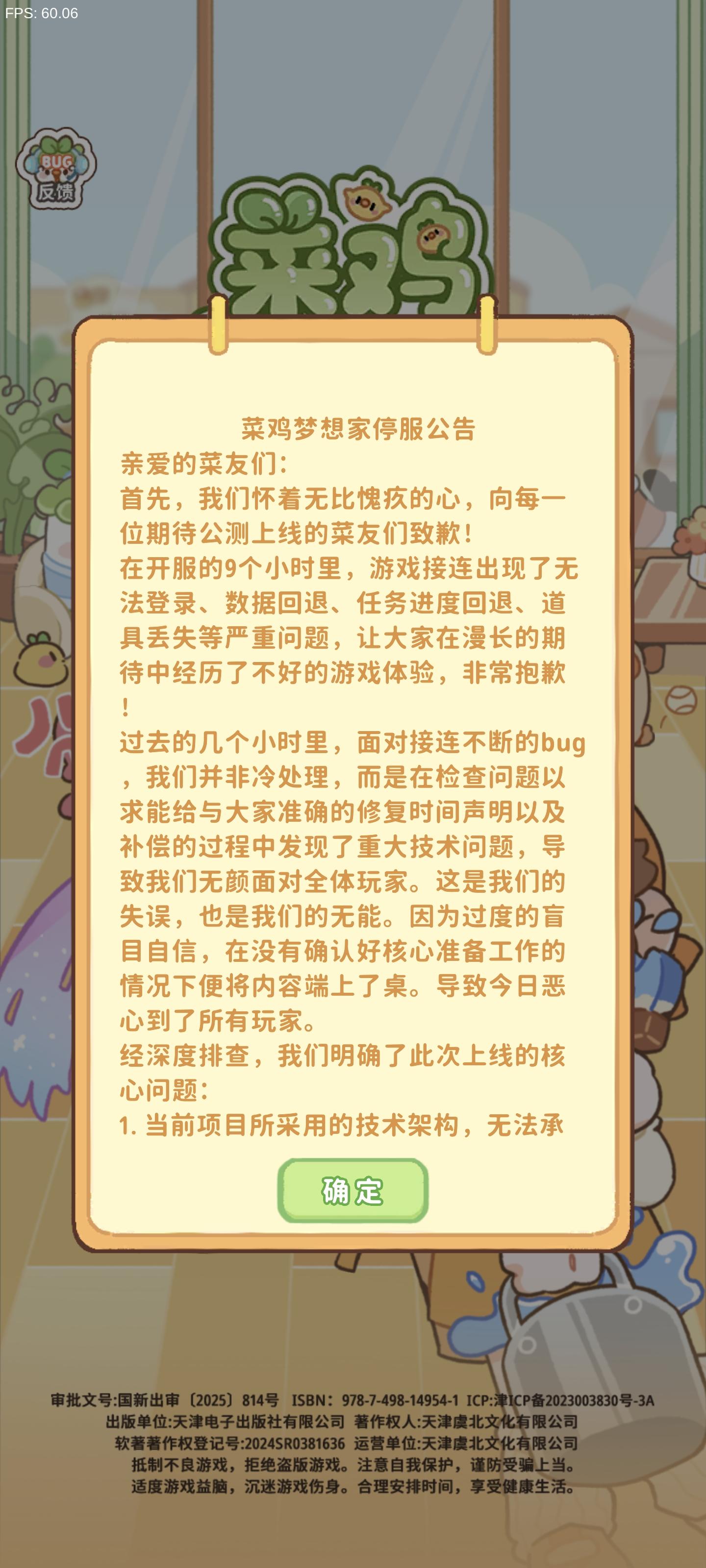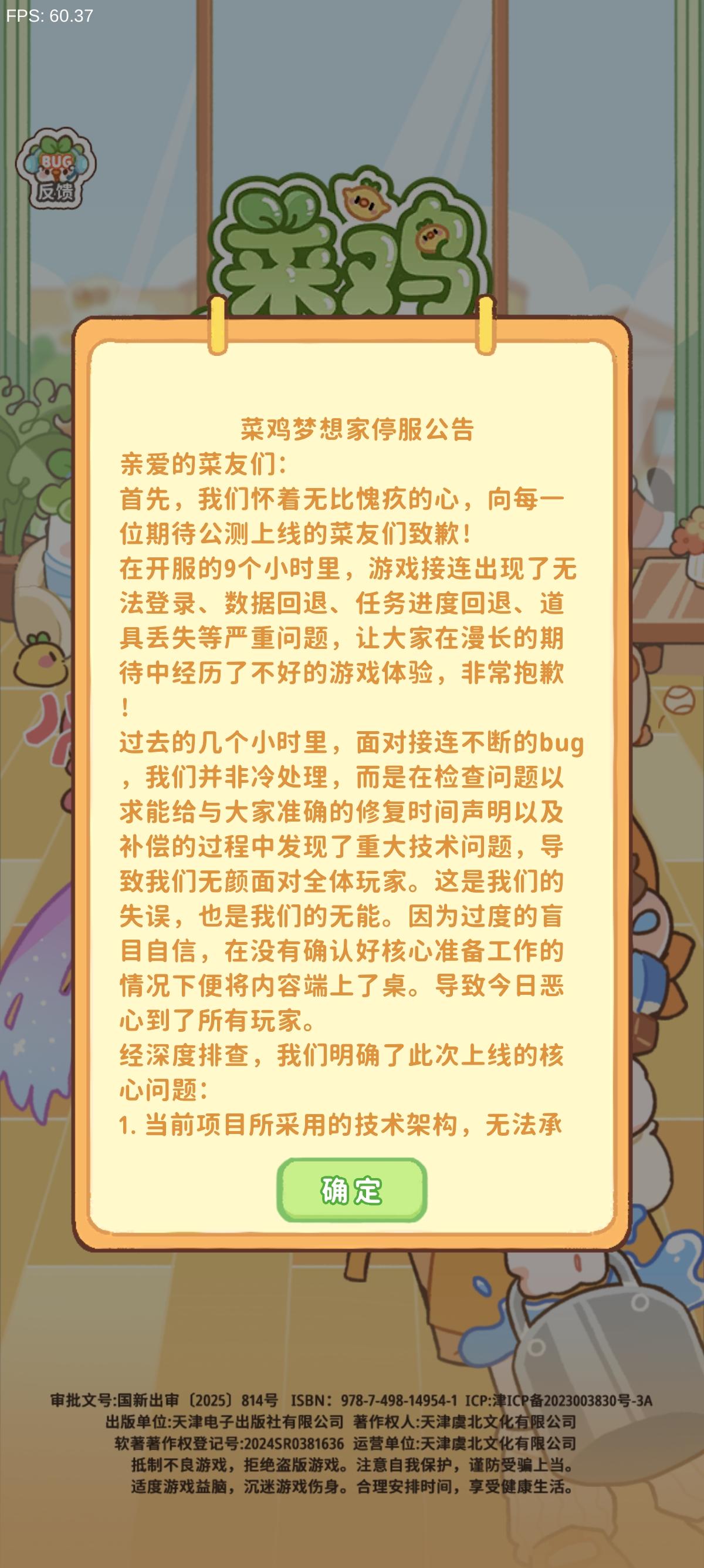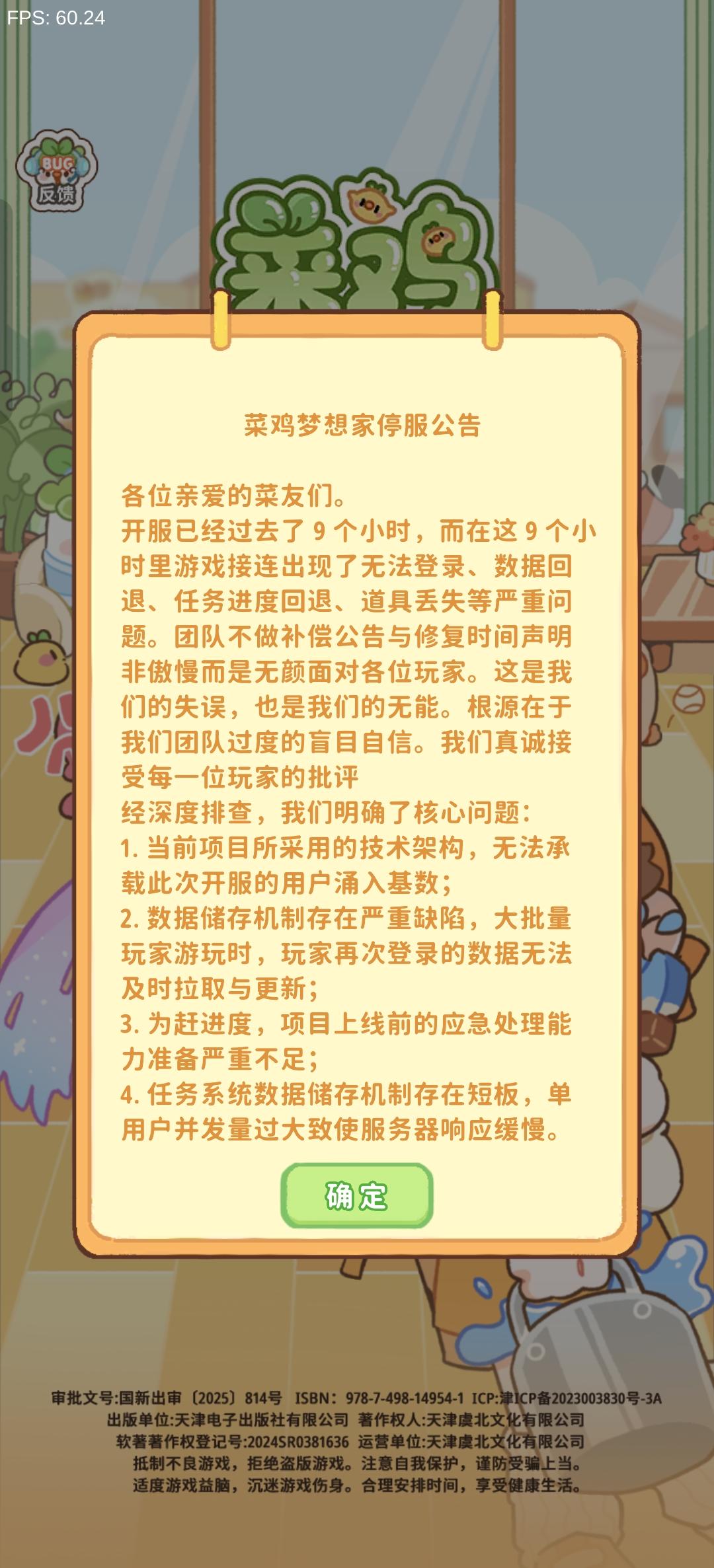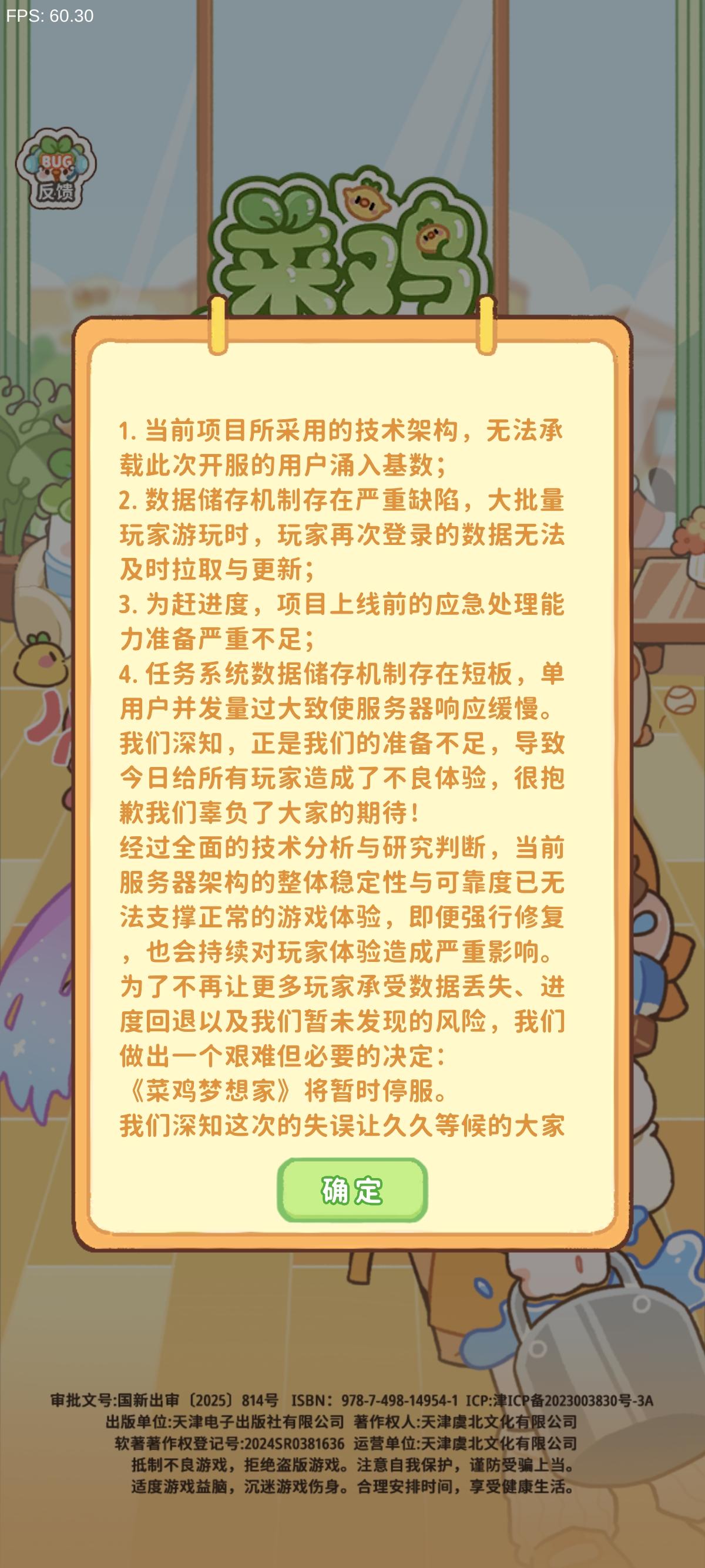 菜鸡梦想家停服公告各位亲爱的菜友们。开服已经过去了9个小时,而在这9个小时里游戏接连出现了无法登录,数据回退,任务进度回退,道具丢失等严重问题。团队不做补偿公告与修复时间声明非傲慢而是无颜面对各位玩家。这是我们的失误,也是我们的无能。根源在于我们团队过度的盲目自信。我们真诚接受每一位玩家的批评经深度排查,我们明确了核心问题:1。当前项目所采用的技术架构,无法承载此次开服的用户涌入基数;2。